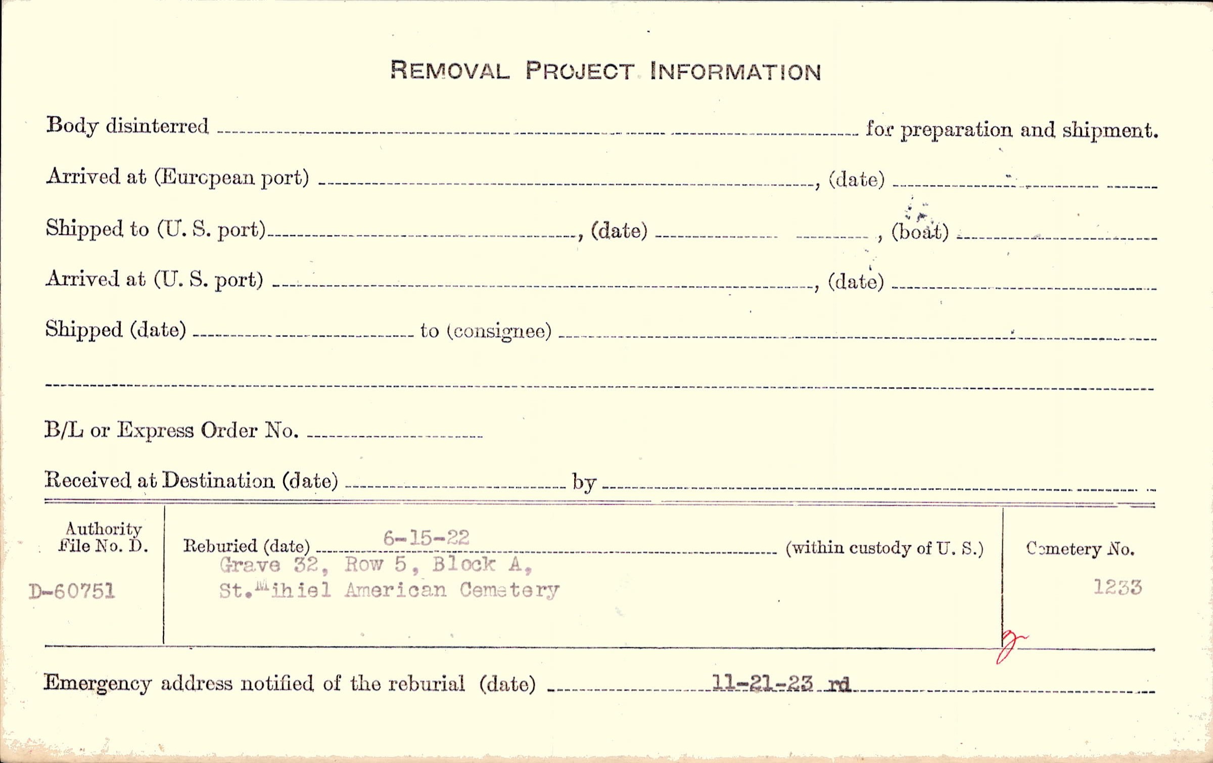 | Permanent Burial in Foreign Cemetery |