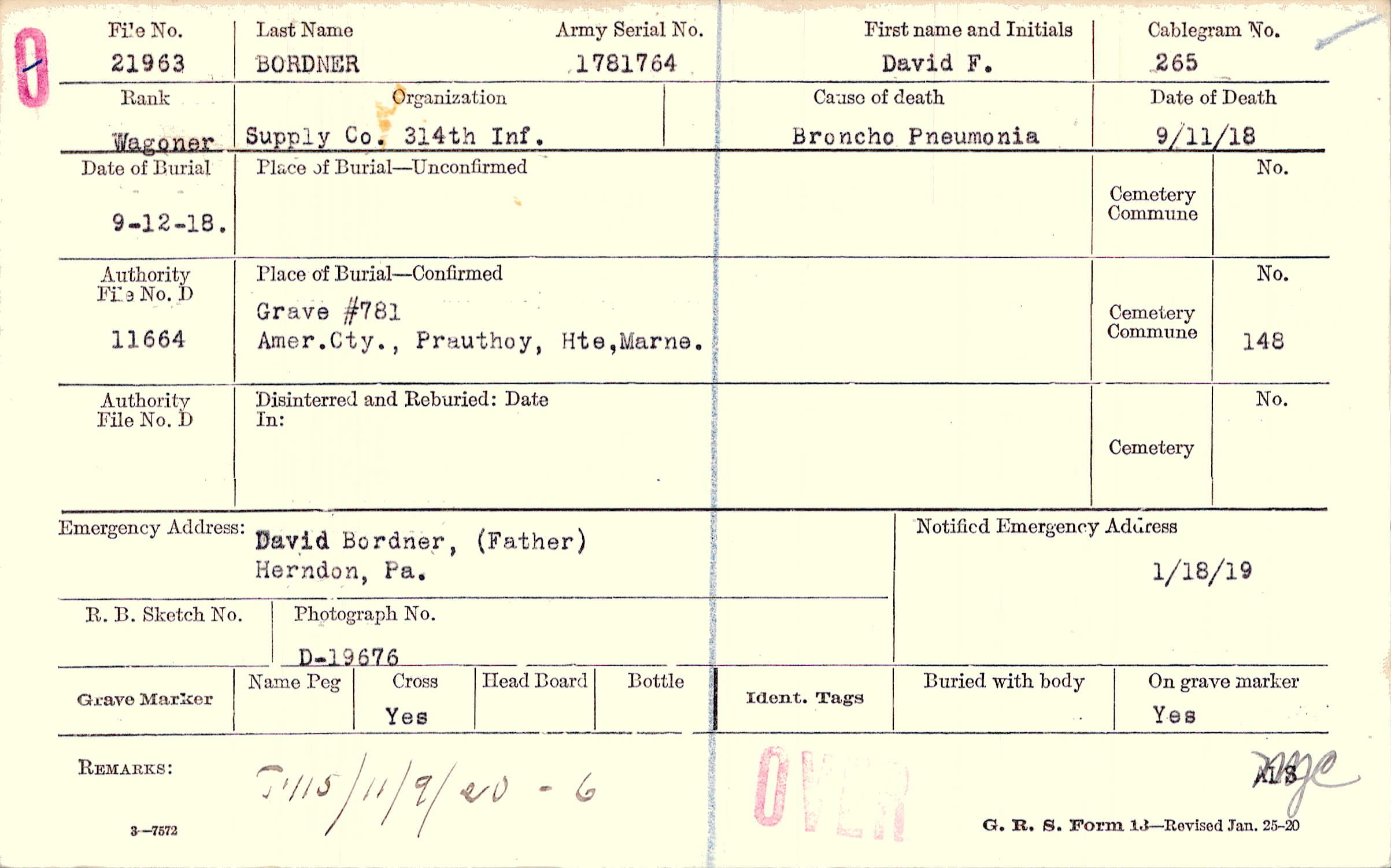 Grave #781, Amer. Cty., Prauthoy, Hte, Marne.