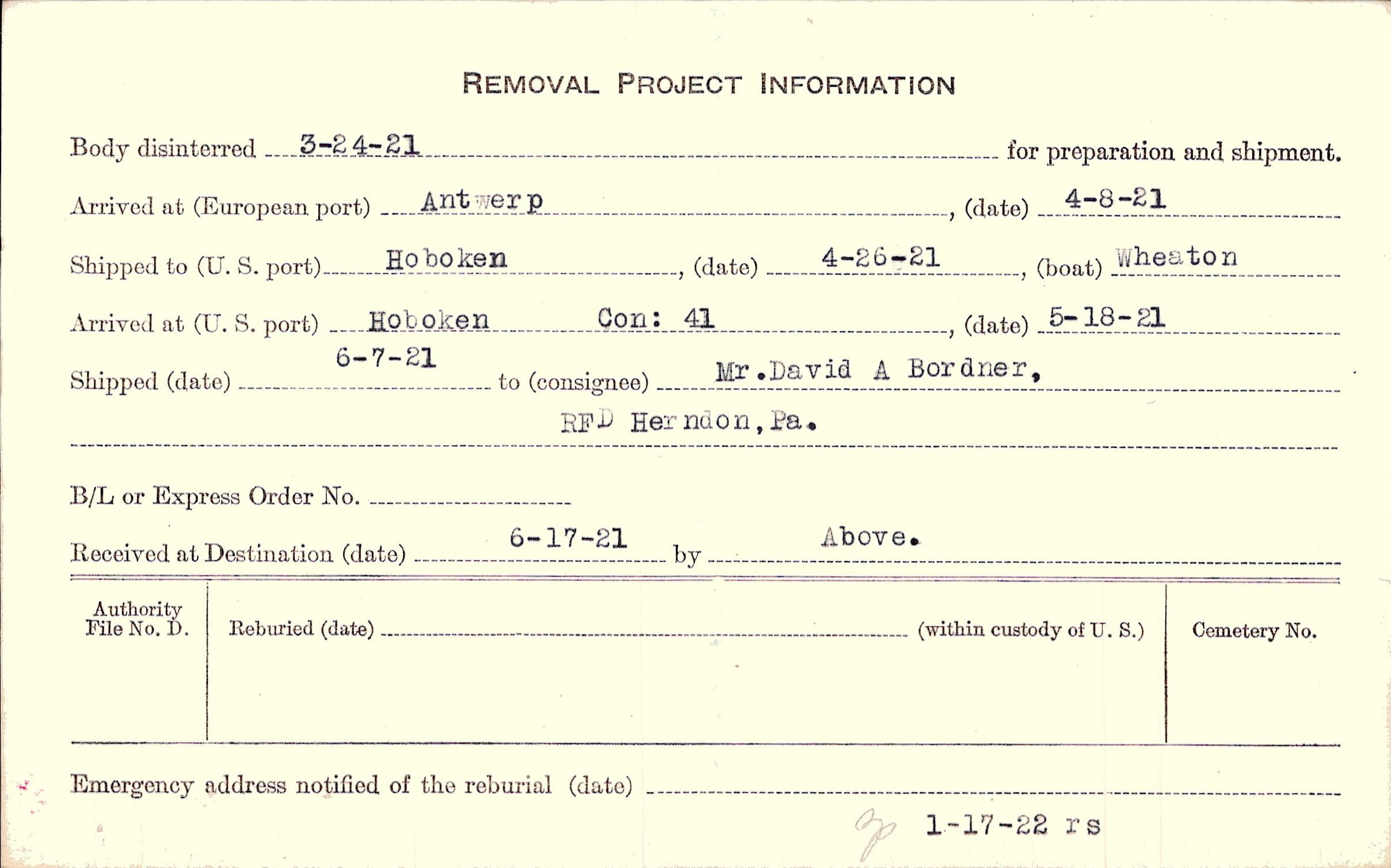 to Mr. David A Bordner, RFD Herndon, Pa.
