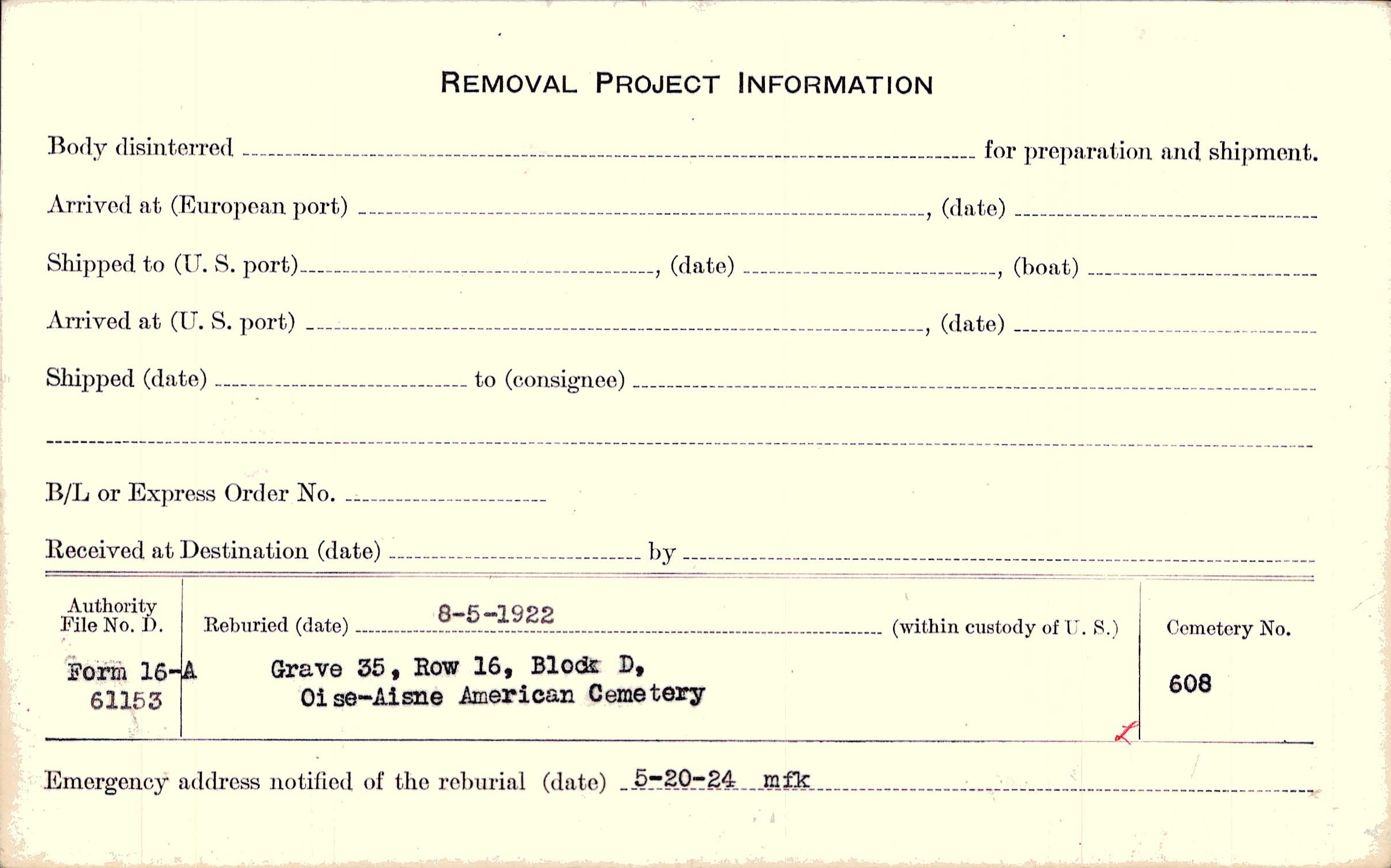 | Permanent Burial in Foreign Cemetery |