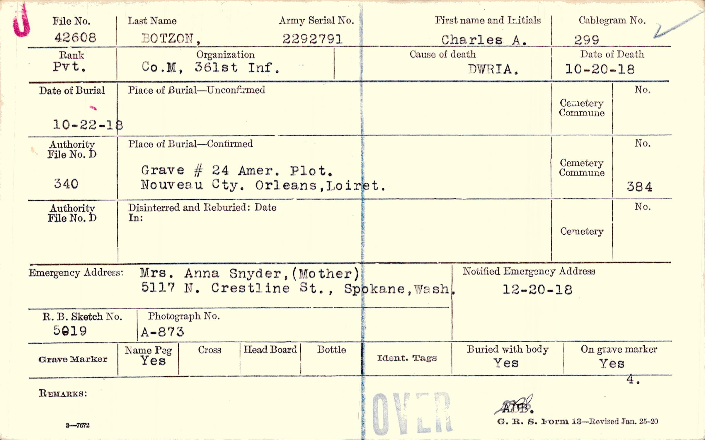 Grave # 24, Amer. Plot., Nouveau Cty., Orleans, Loiret.