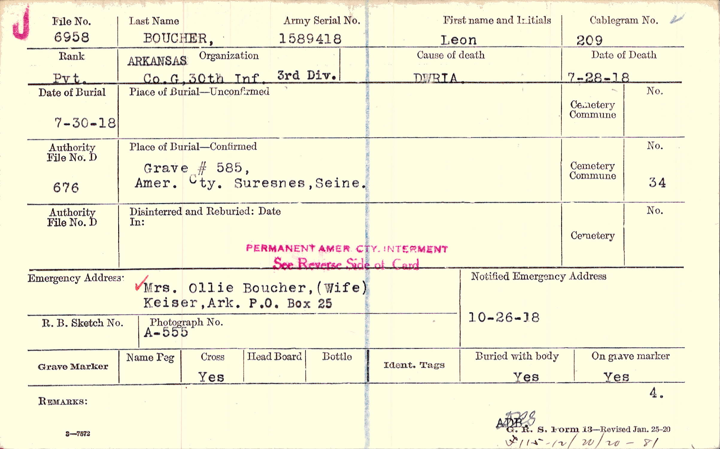 Mrs. Ollie Boucher, (Wife), Keiser, Arkansas PO Box 25, P.O. Box 25