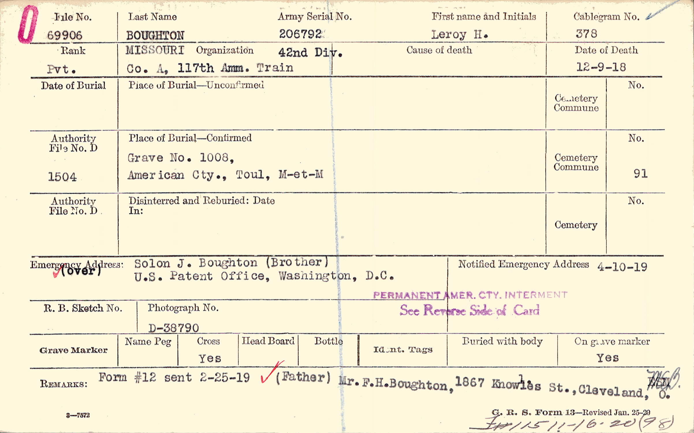 Solon J. Boughton (Brother), U.S. Patent Office, Washington, D.C., (over)
