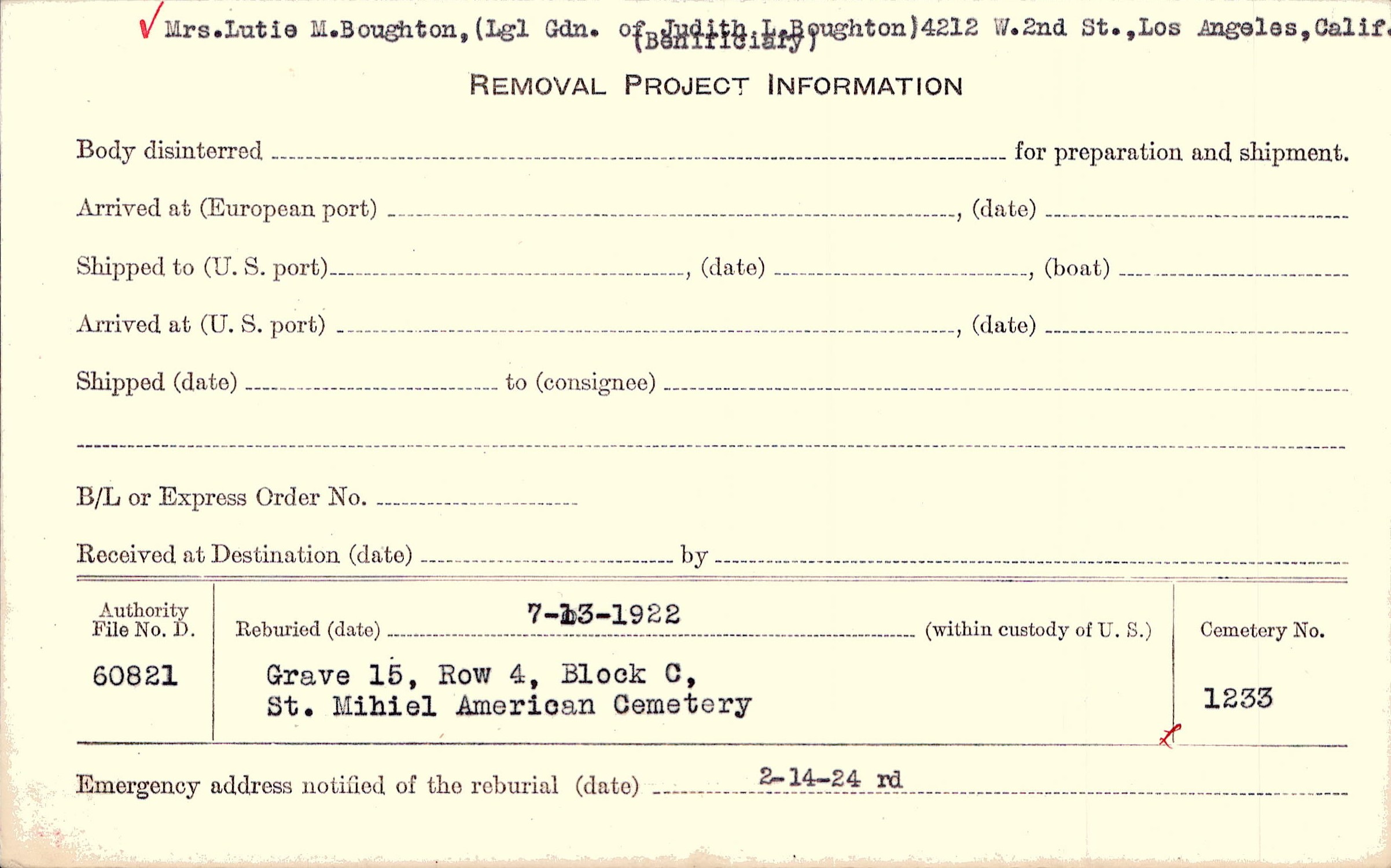 Mrs. Lutie M. Boughton, (Lgl Gdn. of Judith L. Boughton), 4212 W. 2nd St., Los Angeles, Calif. (Beneficiary) |
