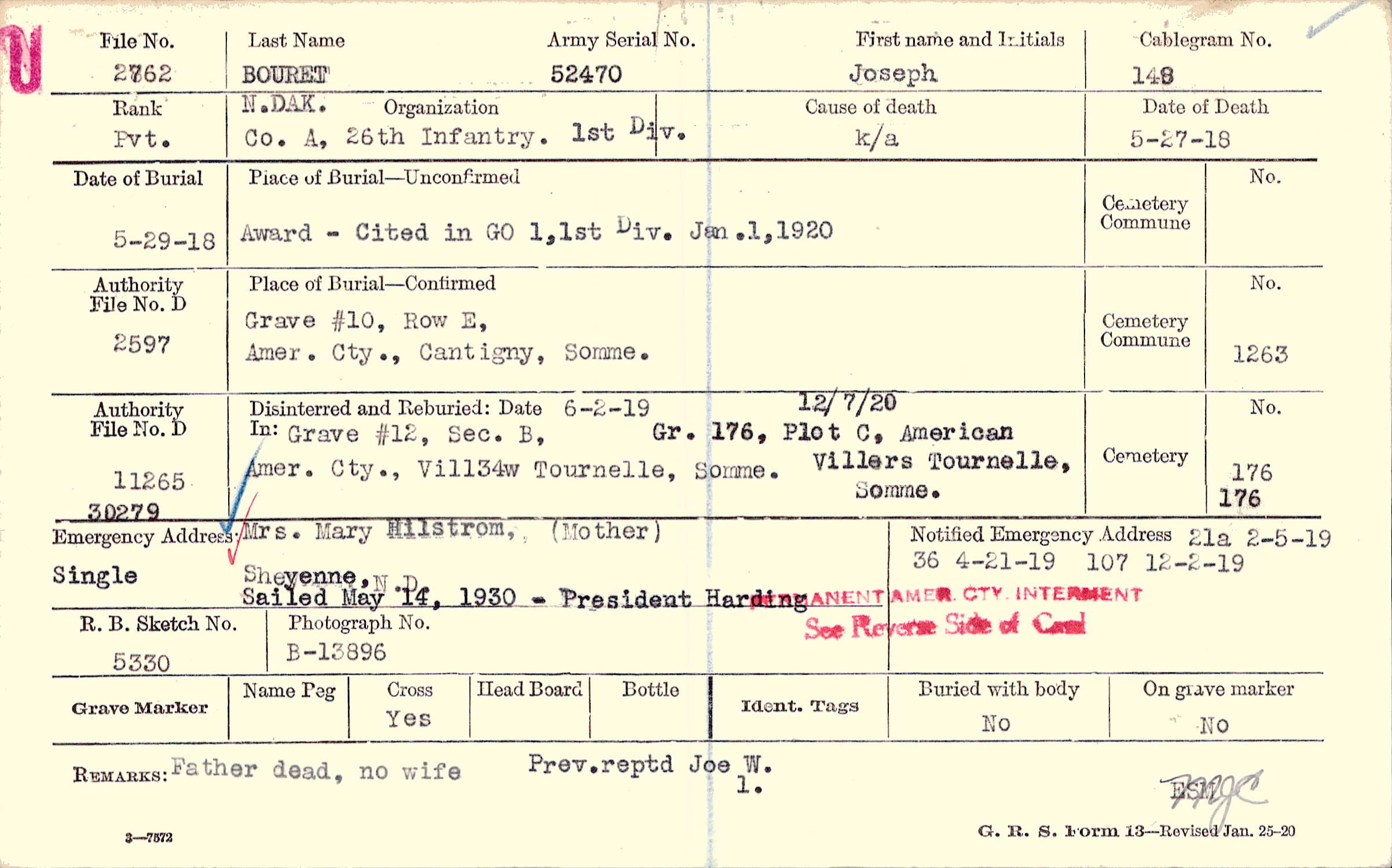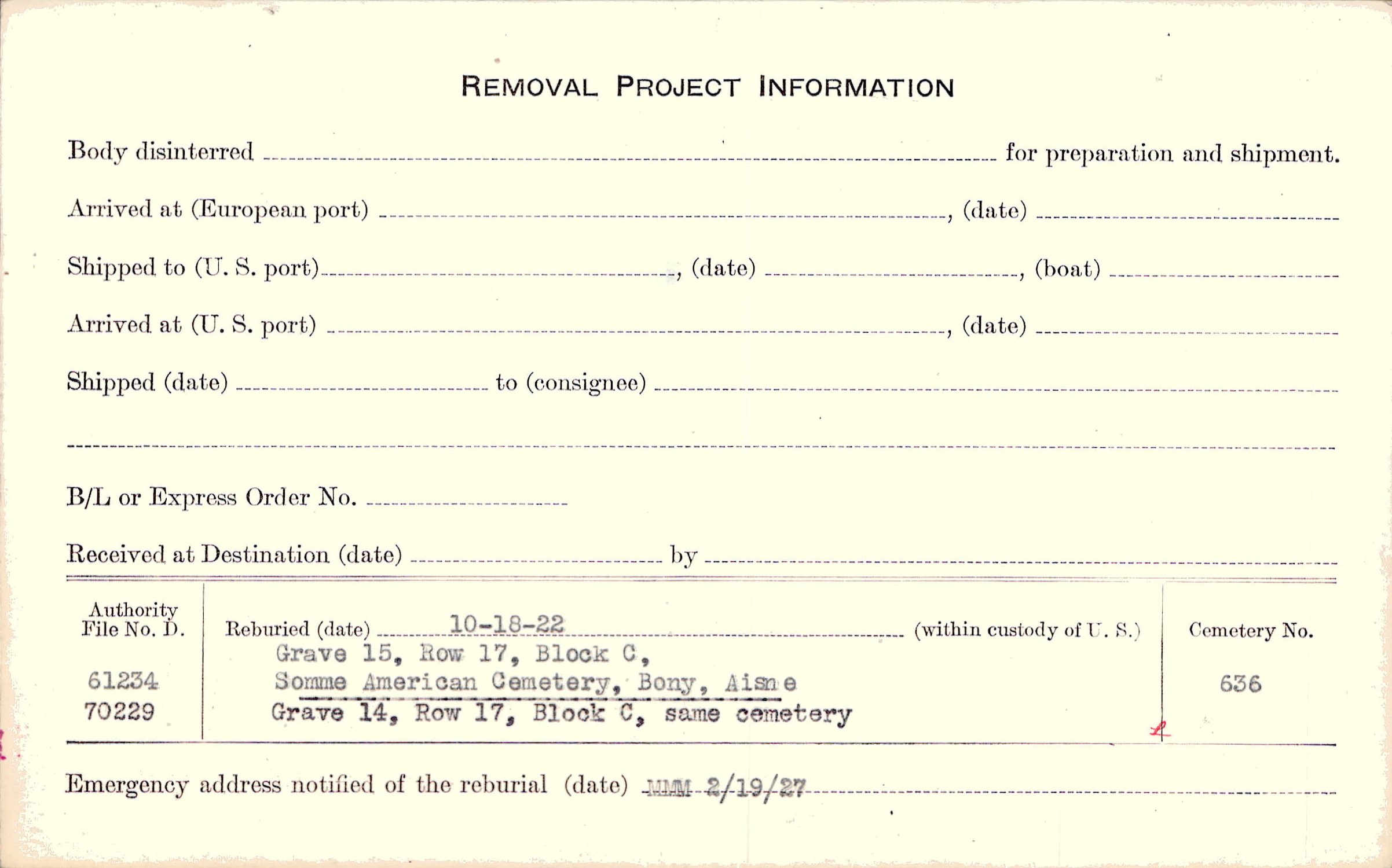 Prior Burial in Foreign Cemetery |