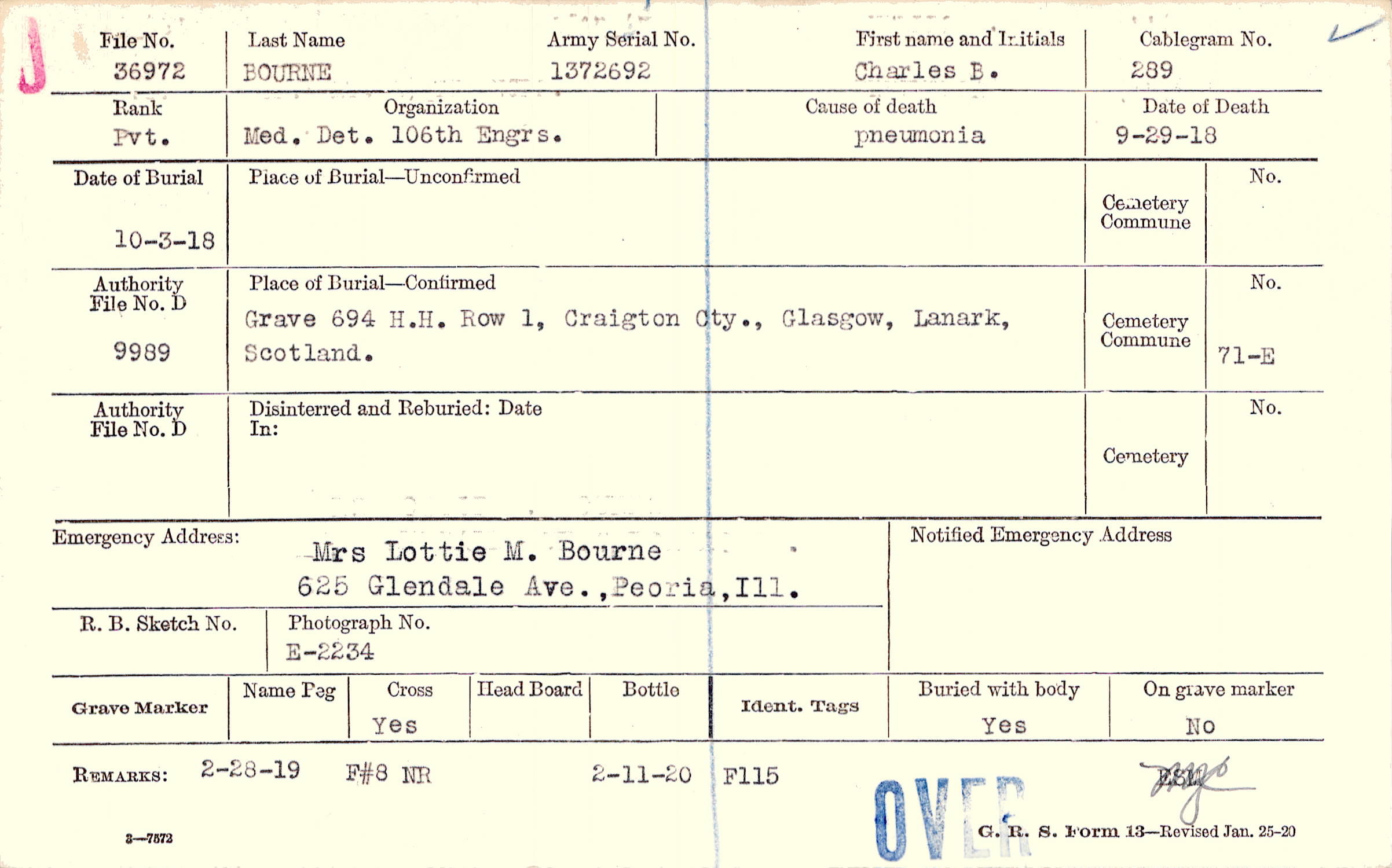 Mrs Lottie M. Bourne, 625 Glendale Ave., Peoria, Ill.