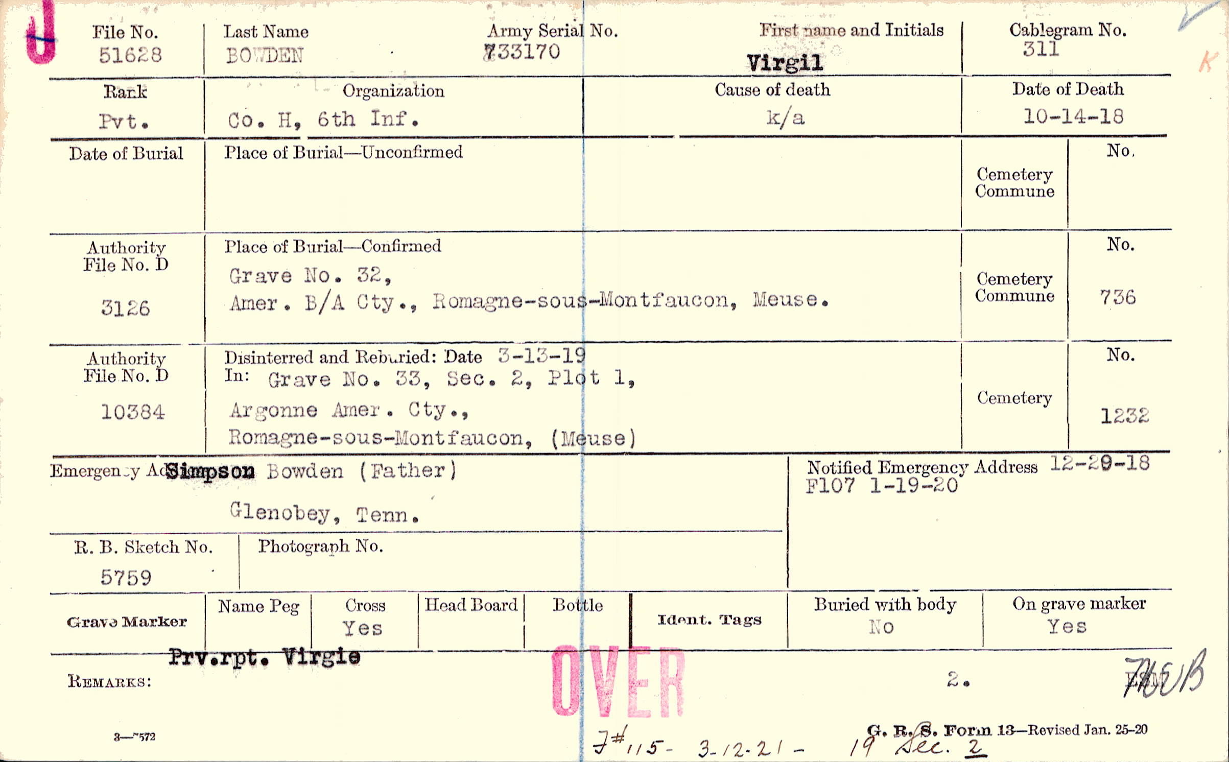 Grave 32, Amer. B/A Cty., Romagne-sous-Montfaucon, Meuse.,