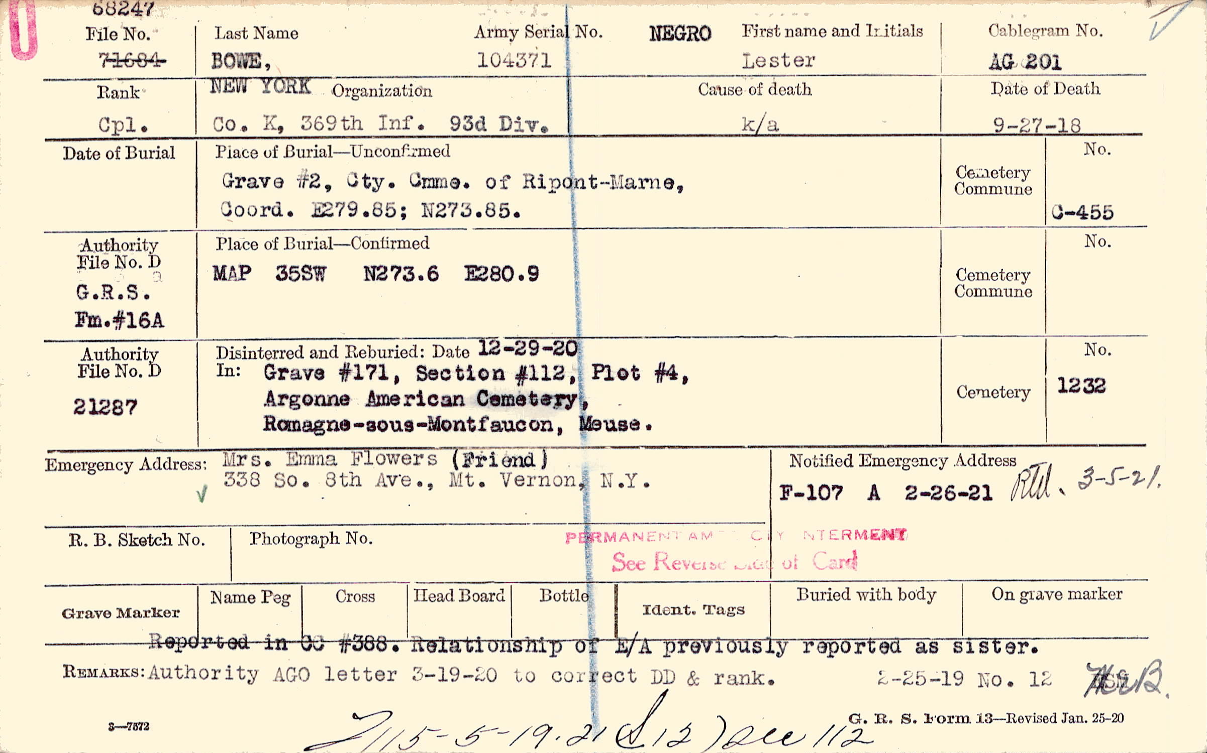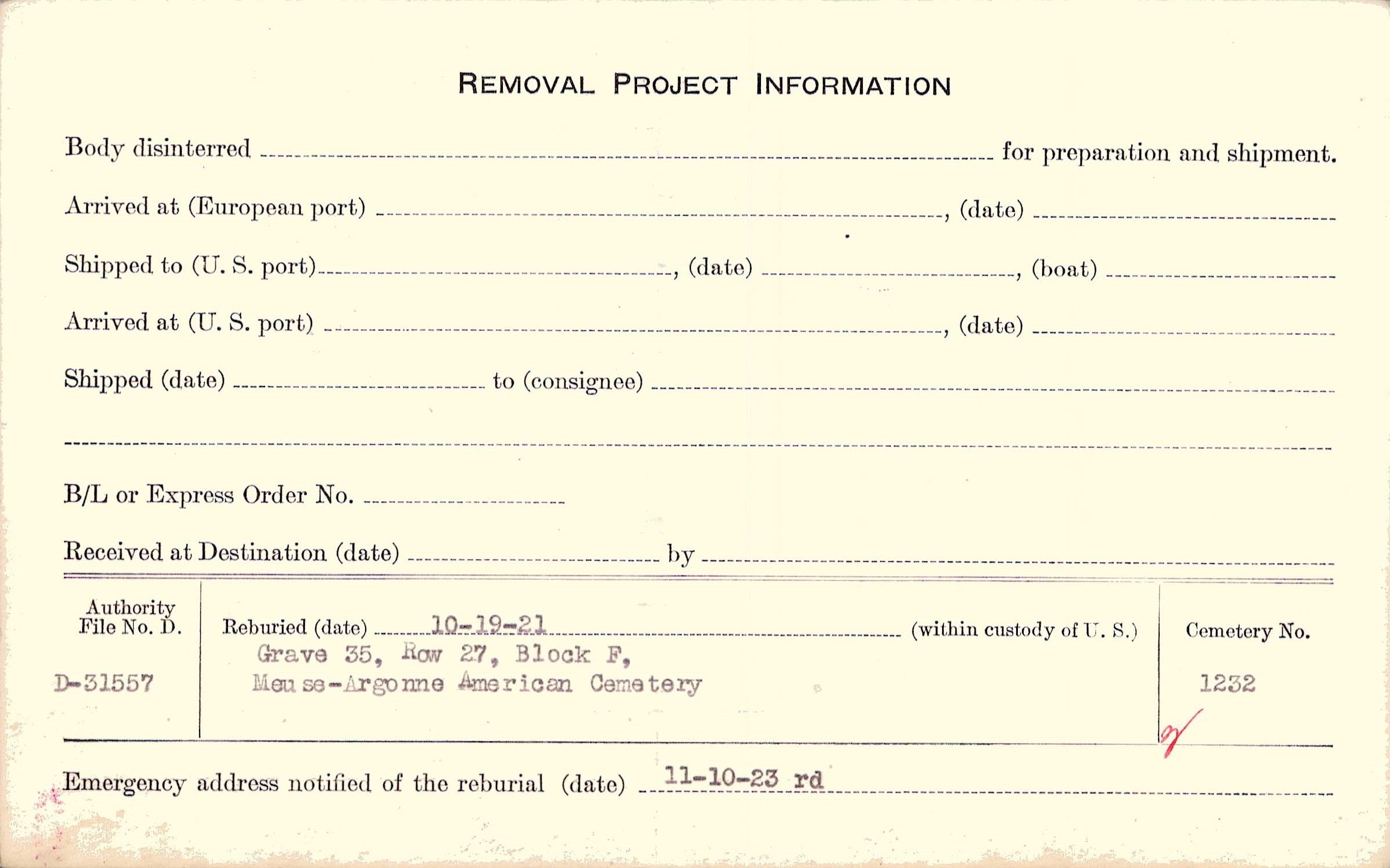 Grave 171, Section 112, Plot 4, Argonne American Cemetery, Romagne-sous-Montfaucon, Meuse
