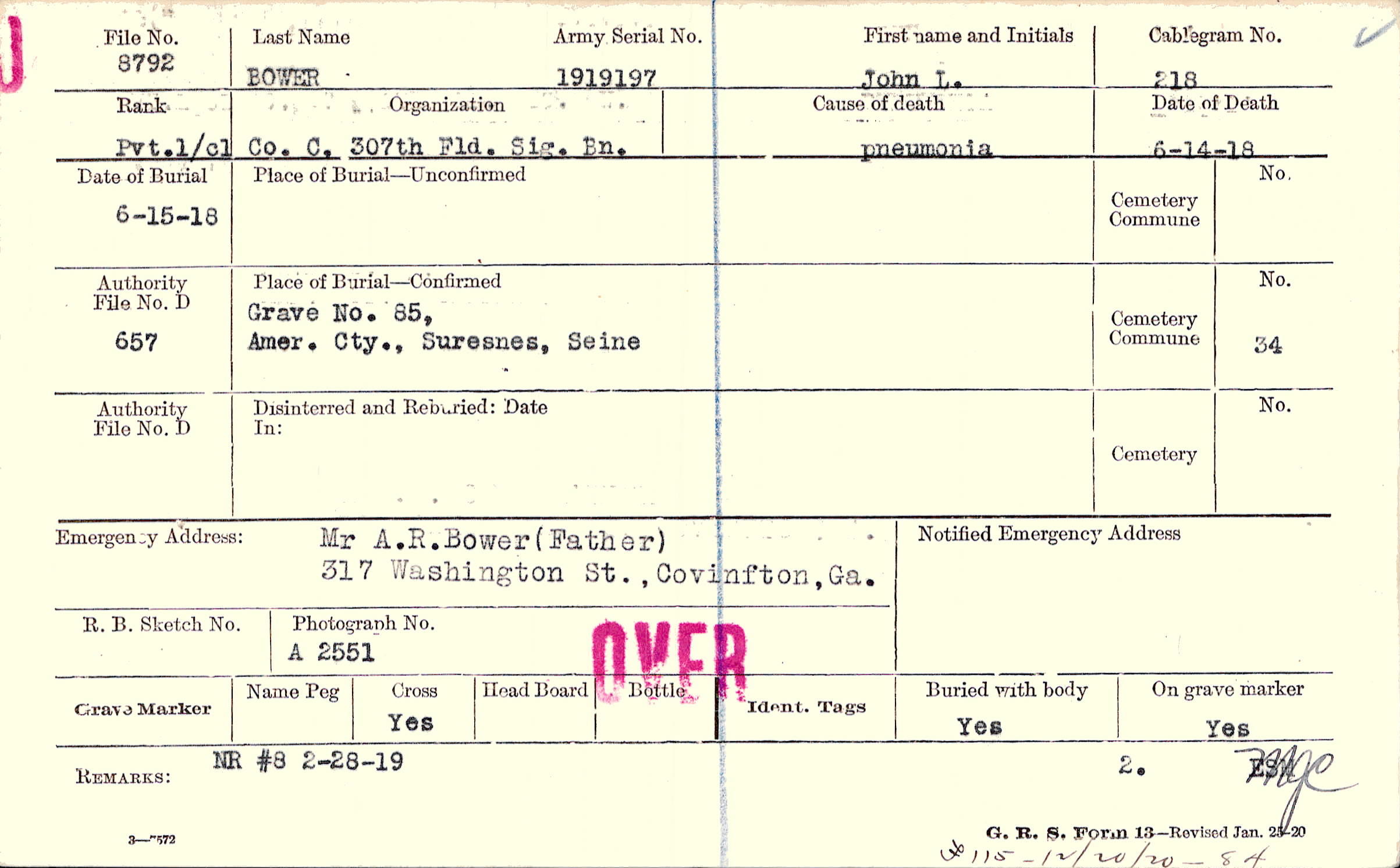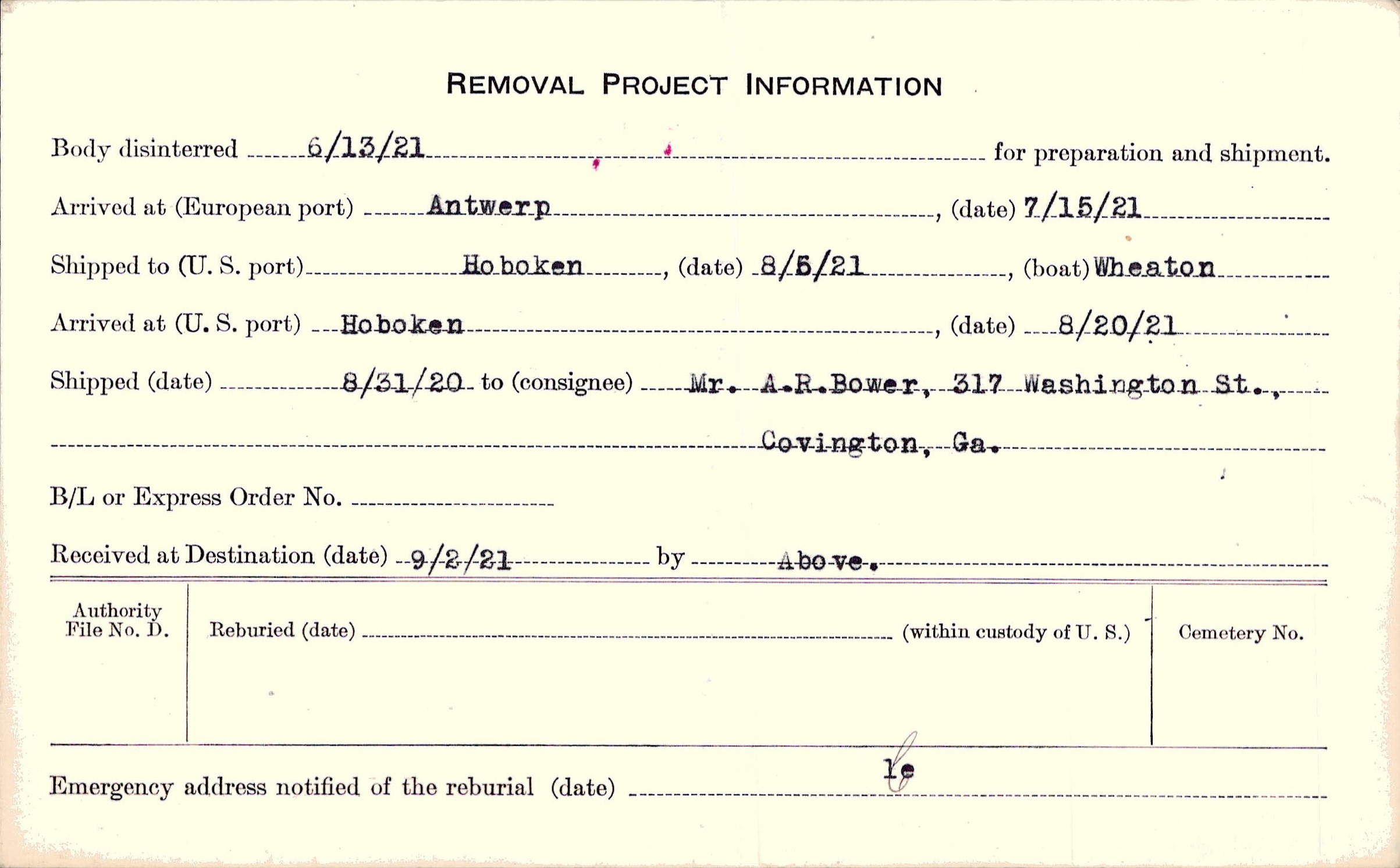 Mr A.R.Bower(Father), 317 Washington St., Covinfton, Ga.