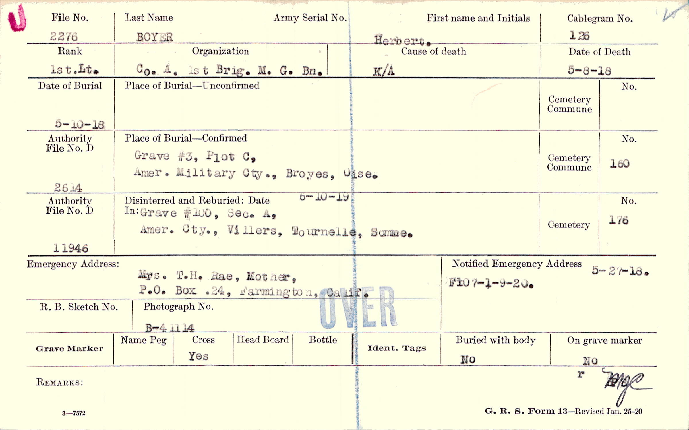 Grave #3, Plot C, Amer. Military Cty. , Broyes, Oise.
