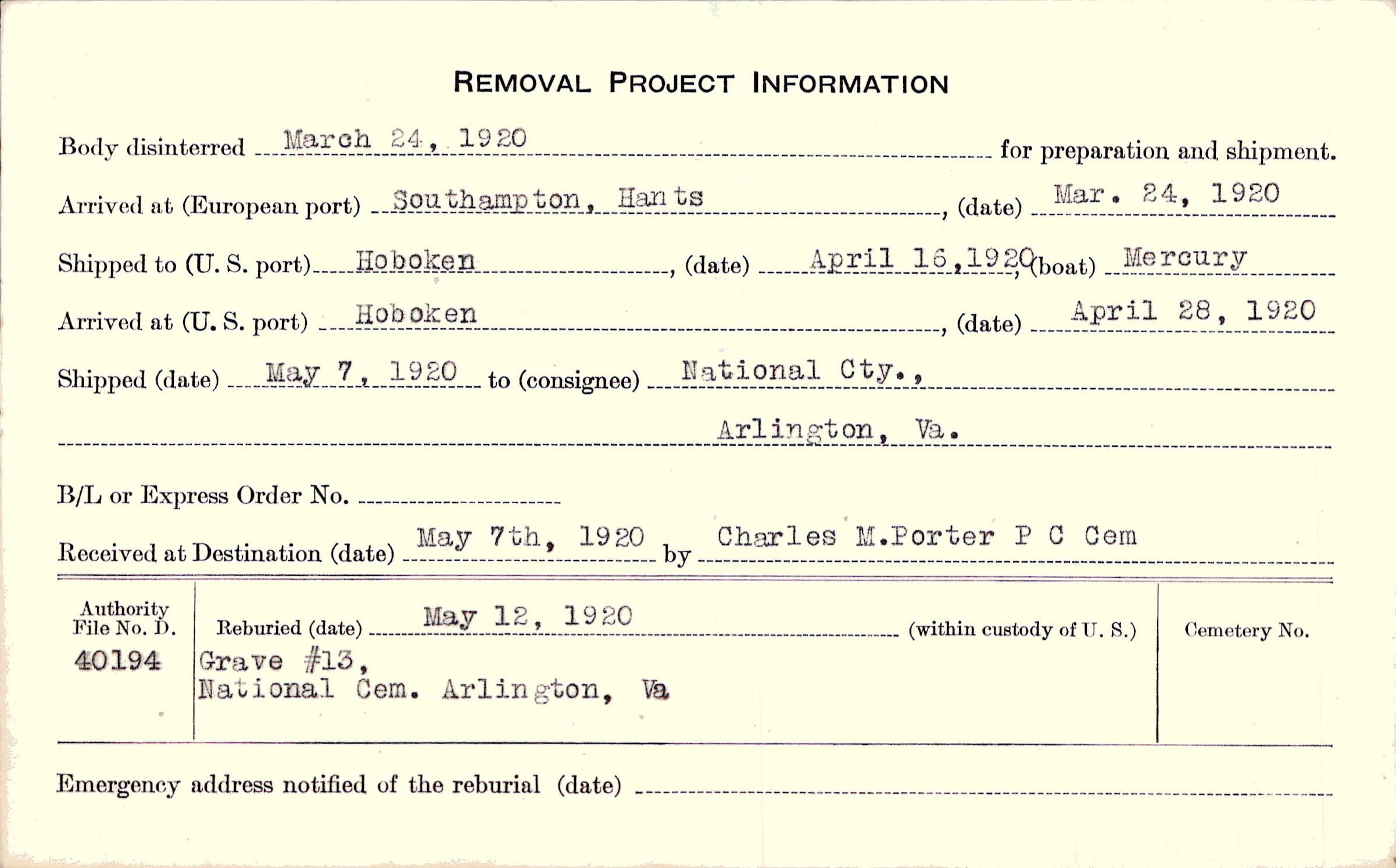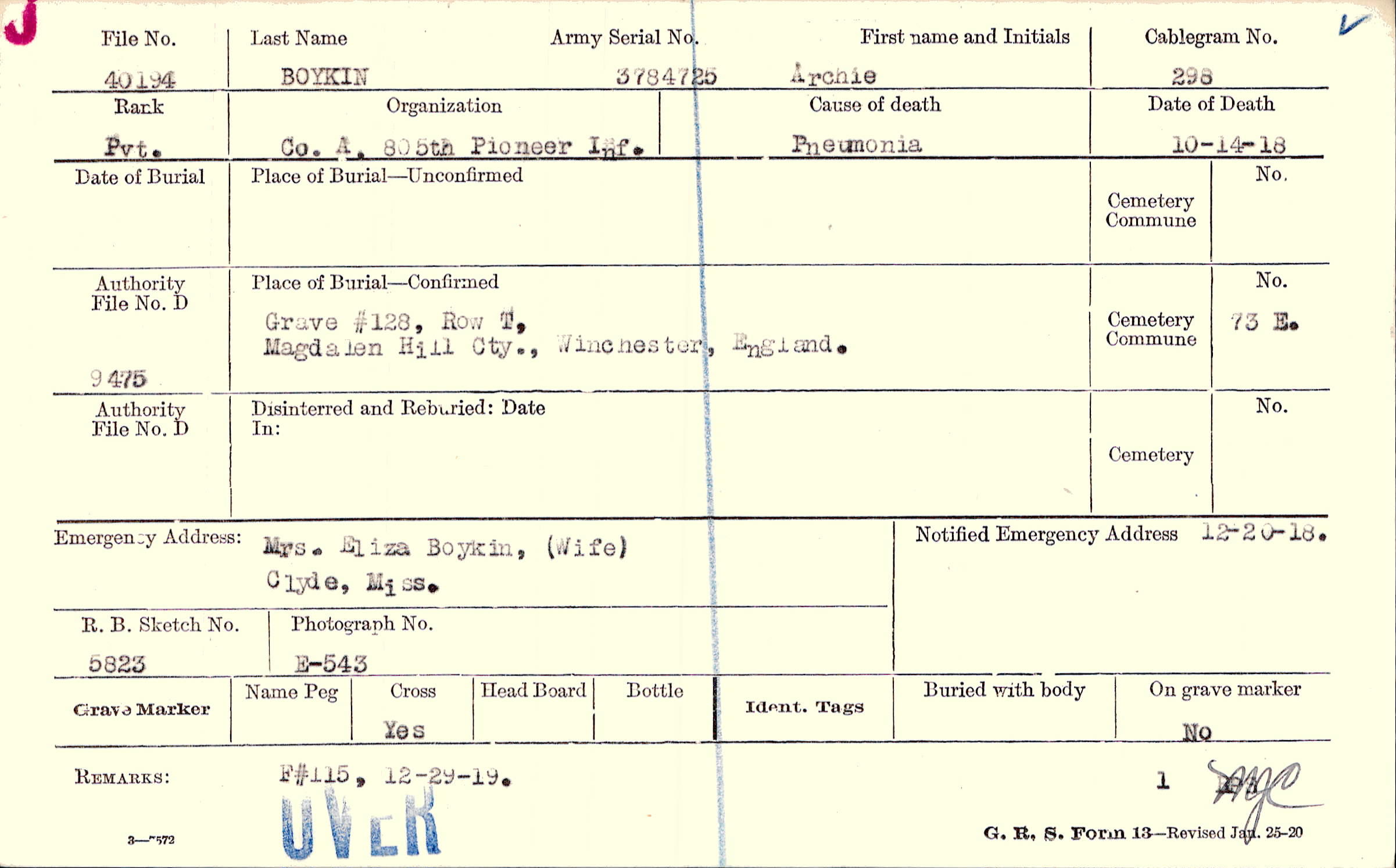 Grave # 128, Row T, Magdalen Hill Cty., Winchester, England.