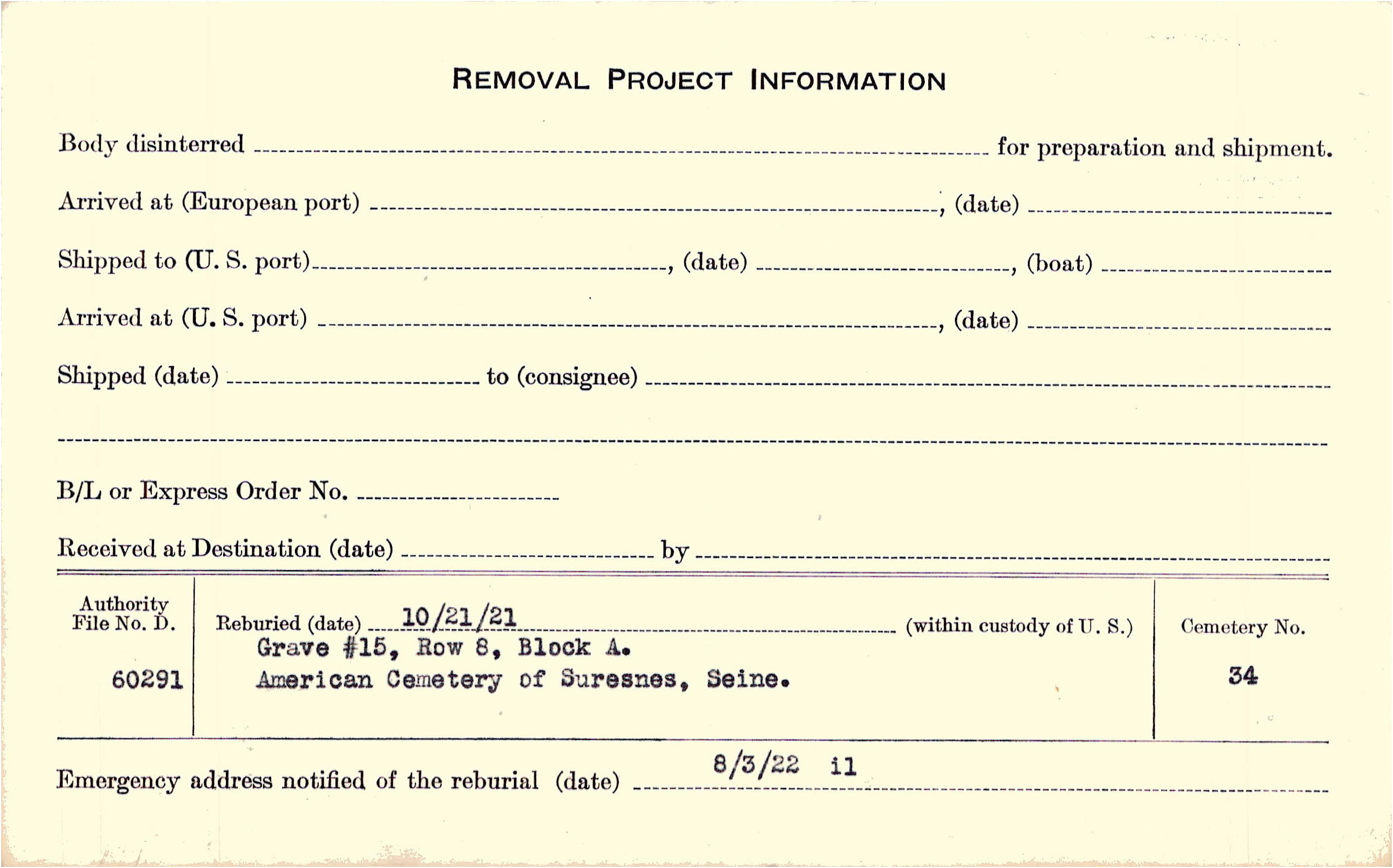 Grave #28, Amer. Plot, St. Genes Cemetery, Talence, Gironde.