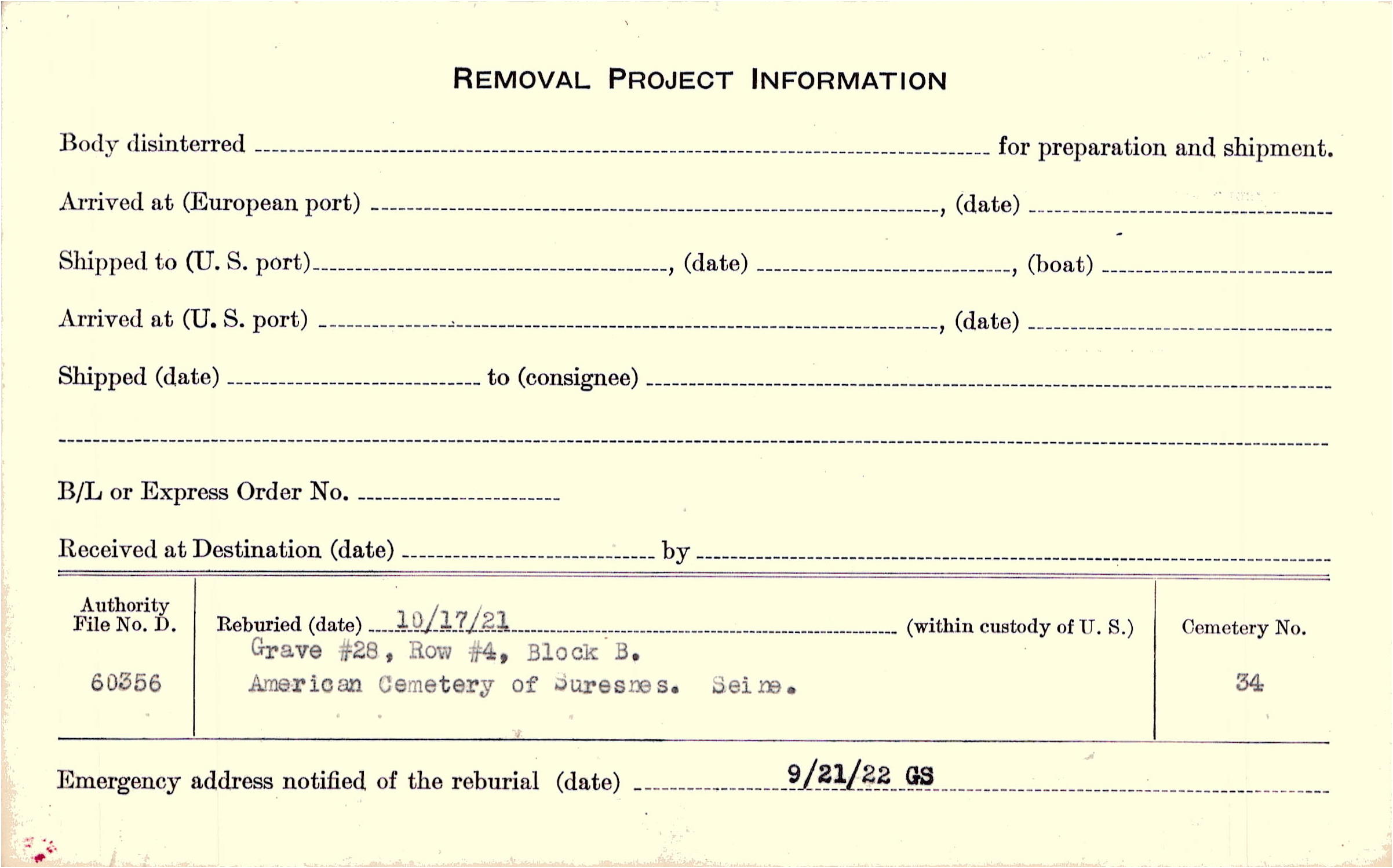 | Permanent Burial in Foreign Cemetery |