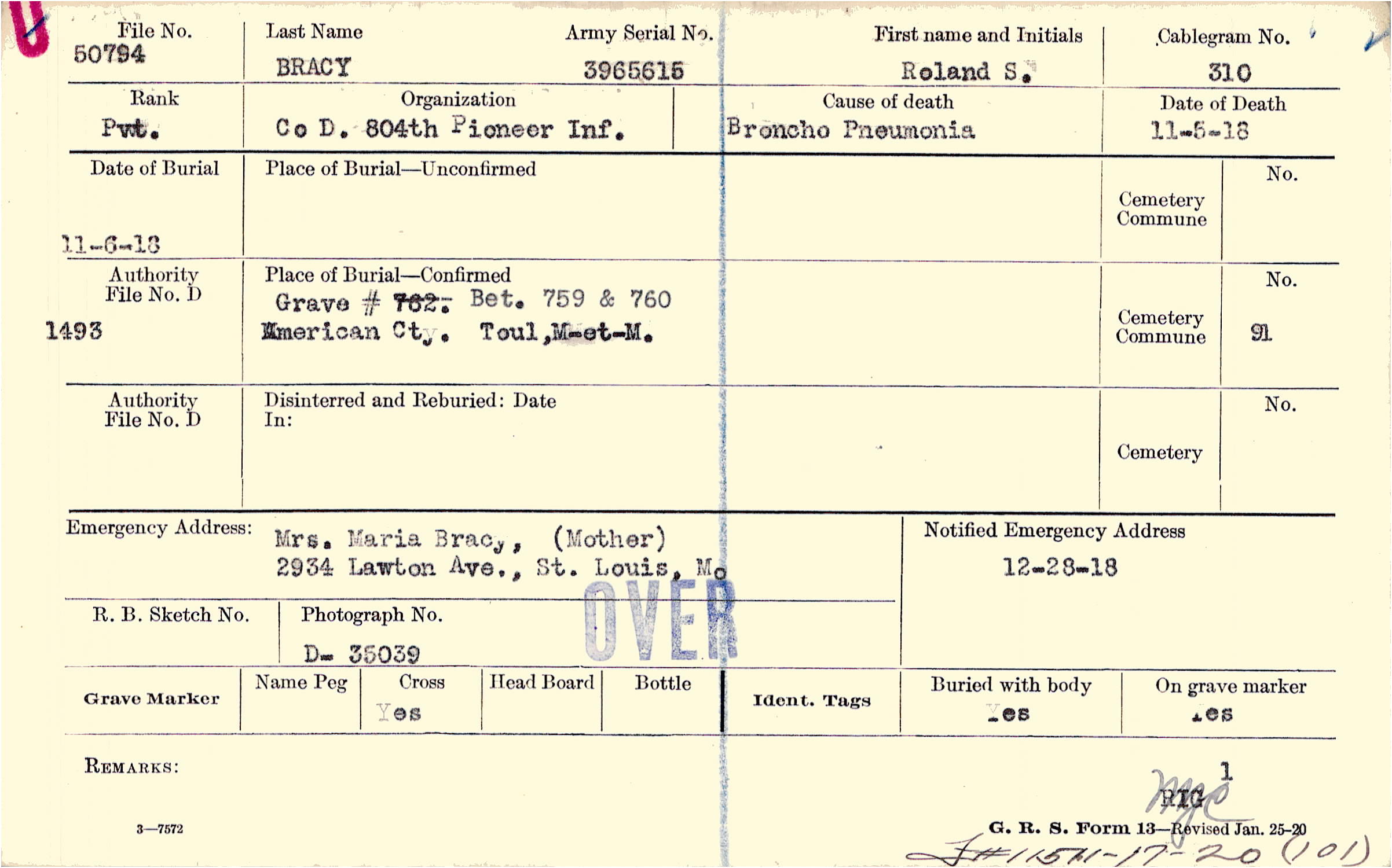Grave # Bet. 759 &760, American Cty., Toul, M-et-M.