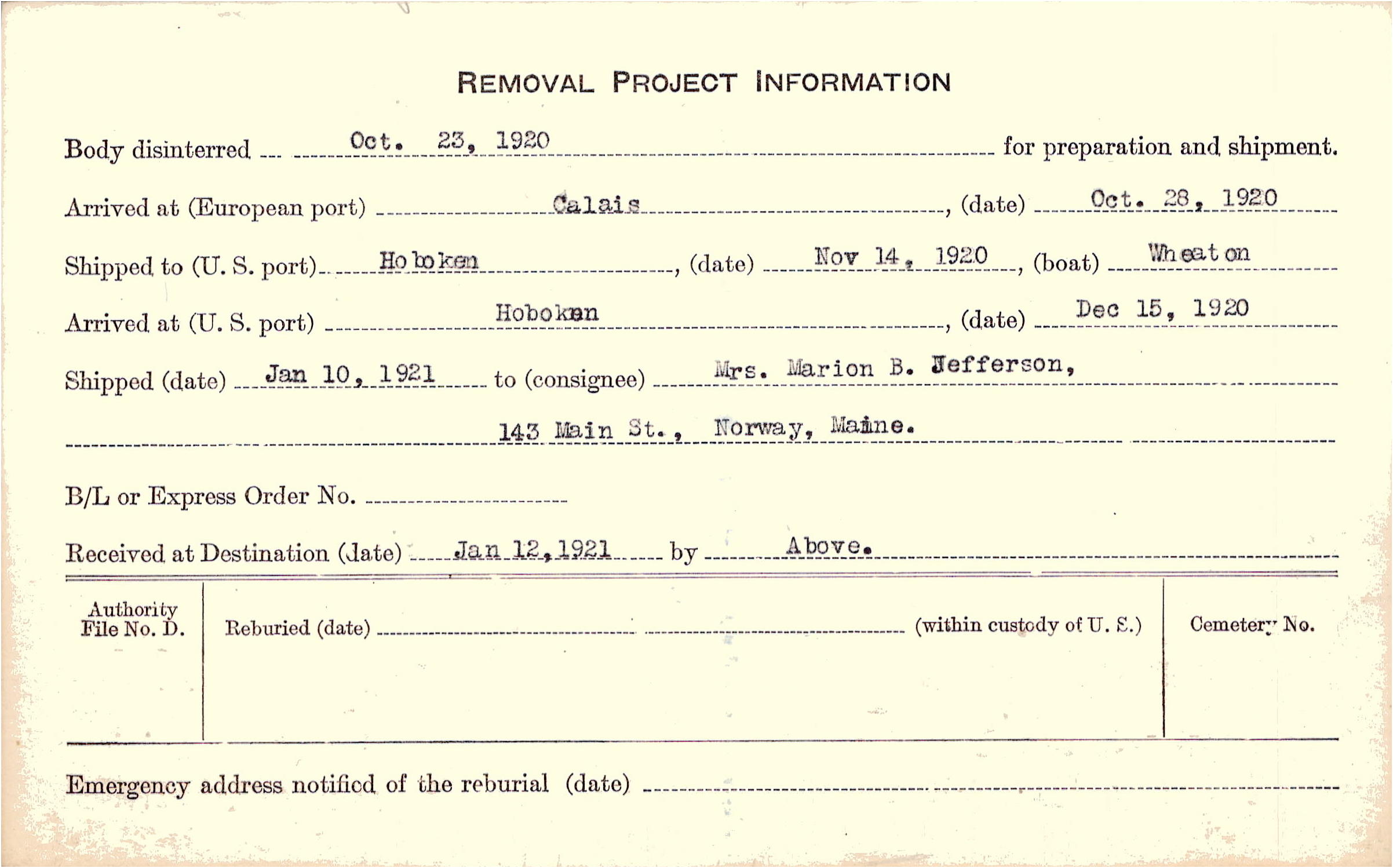 to Mrs. Marion B. Jefferson, 143 Main St., Norway, Maine