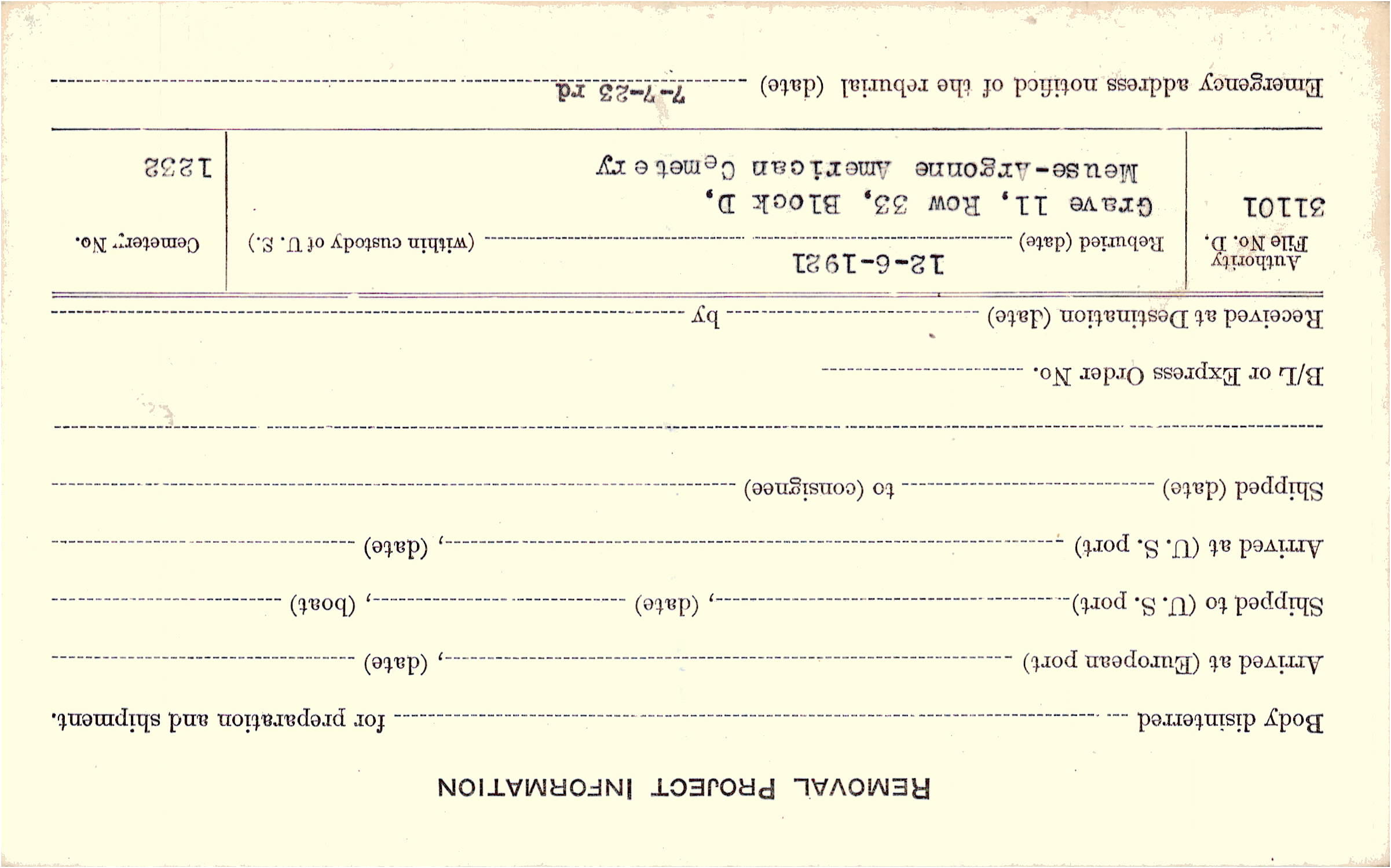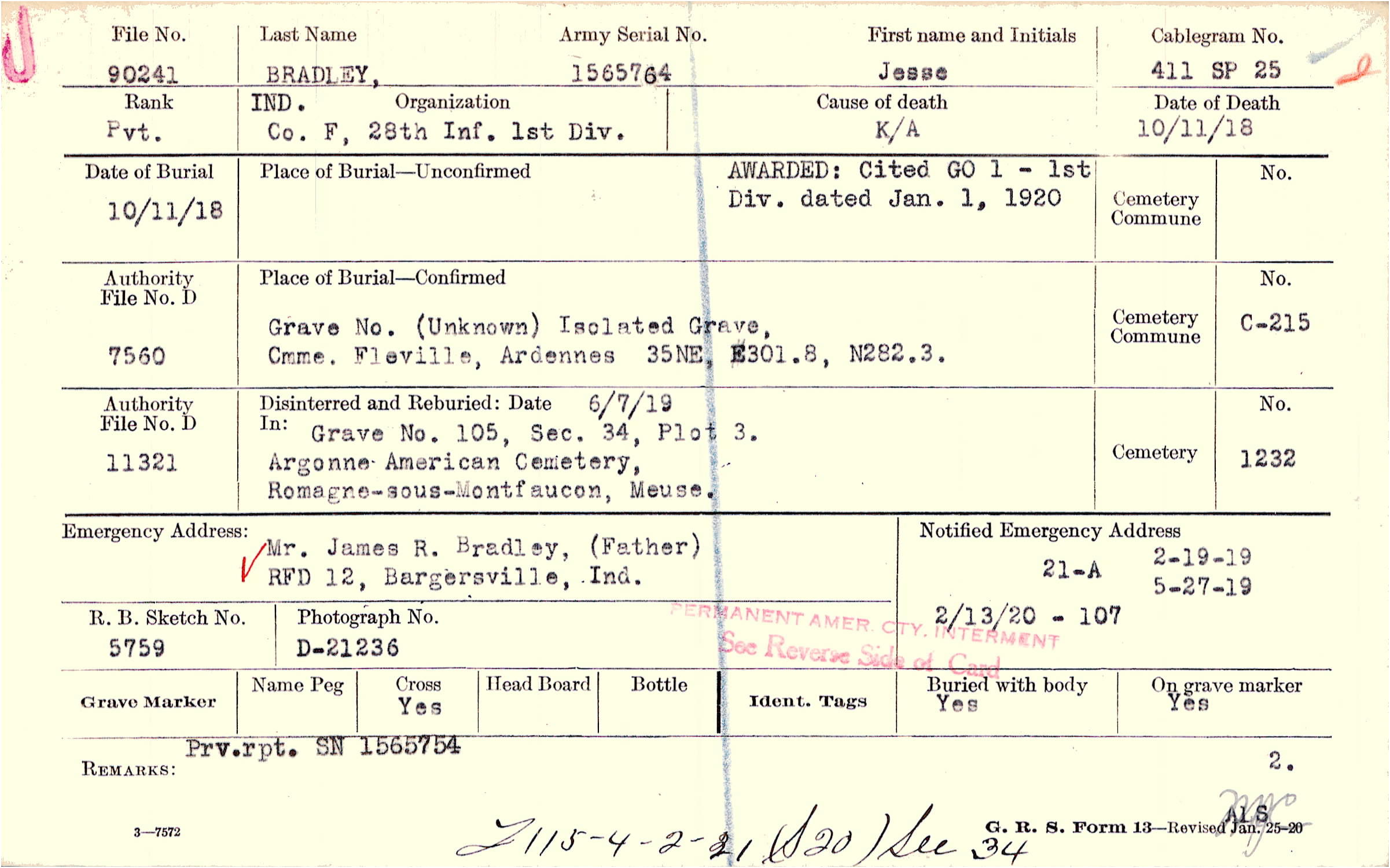 Grave 105, Section 34, Plot 3, Argonne American Cemetery, Romagne-sous-Montfaucon, Meuse