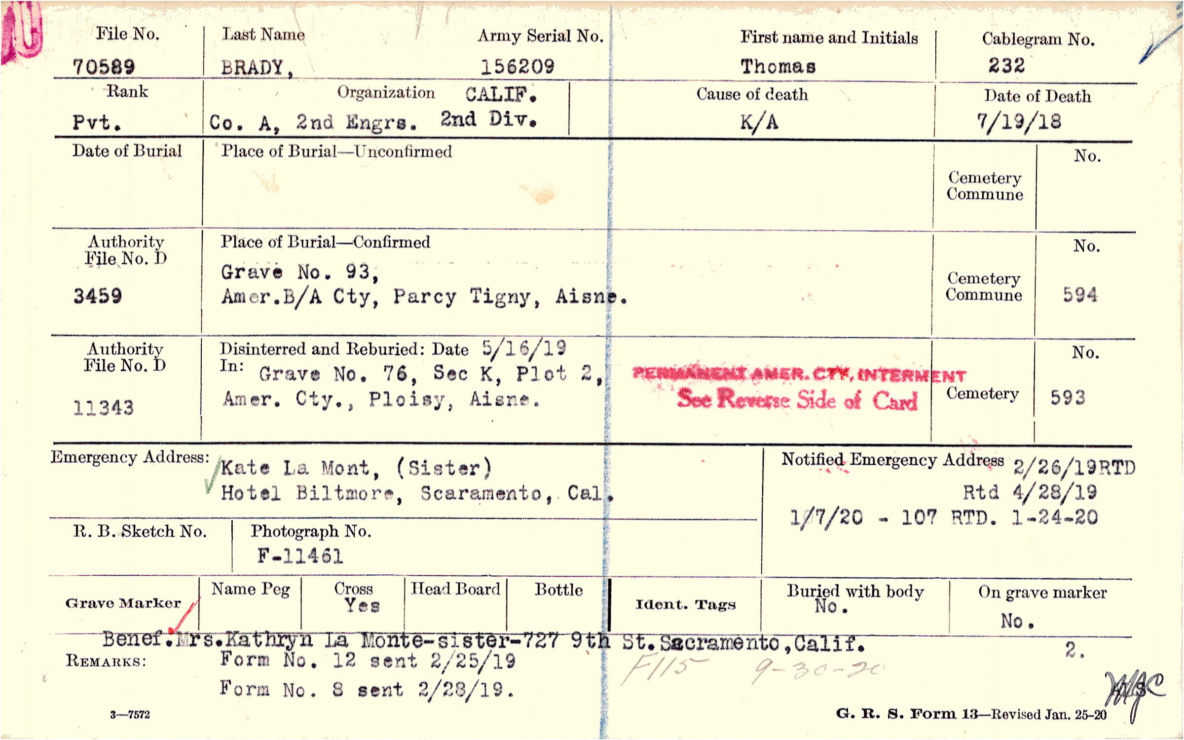 2/26/1919RTD, Rtd 4/28/1919, Form 107: 1/7/1920 RTD 1/24/1920