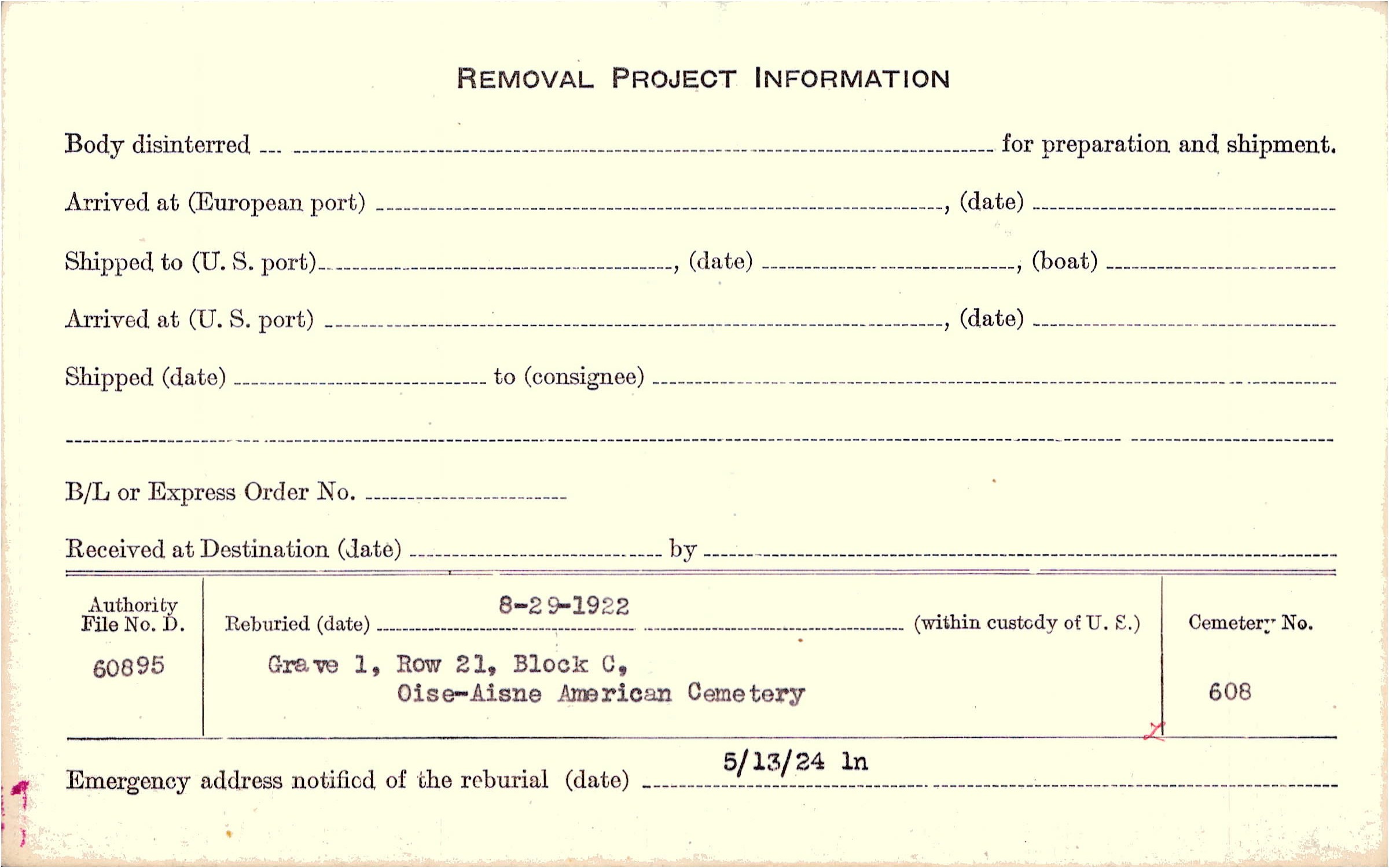 Grave 93, Amer. B/A Cty, Parcy Tigny, Aisne.