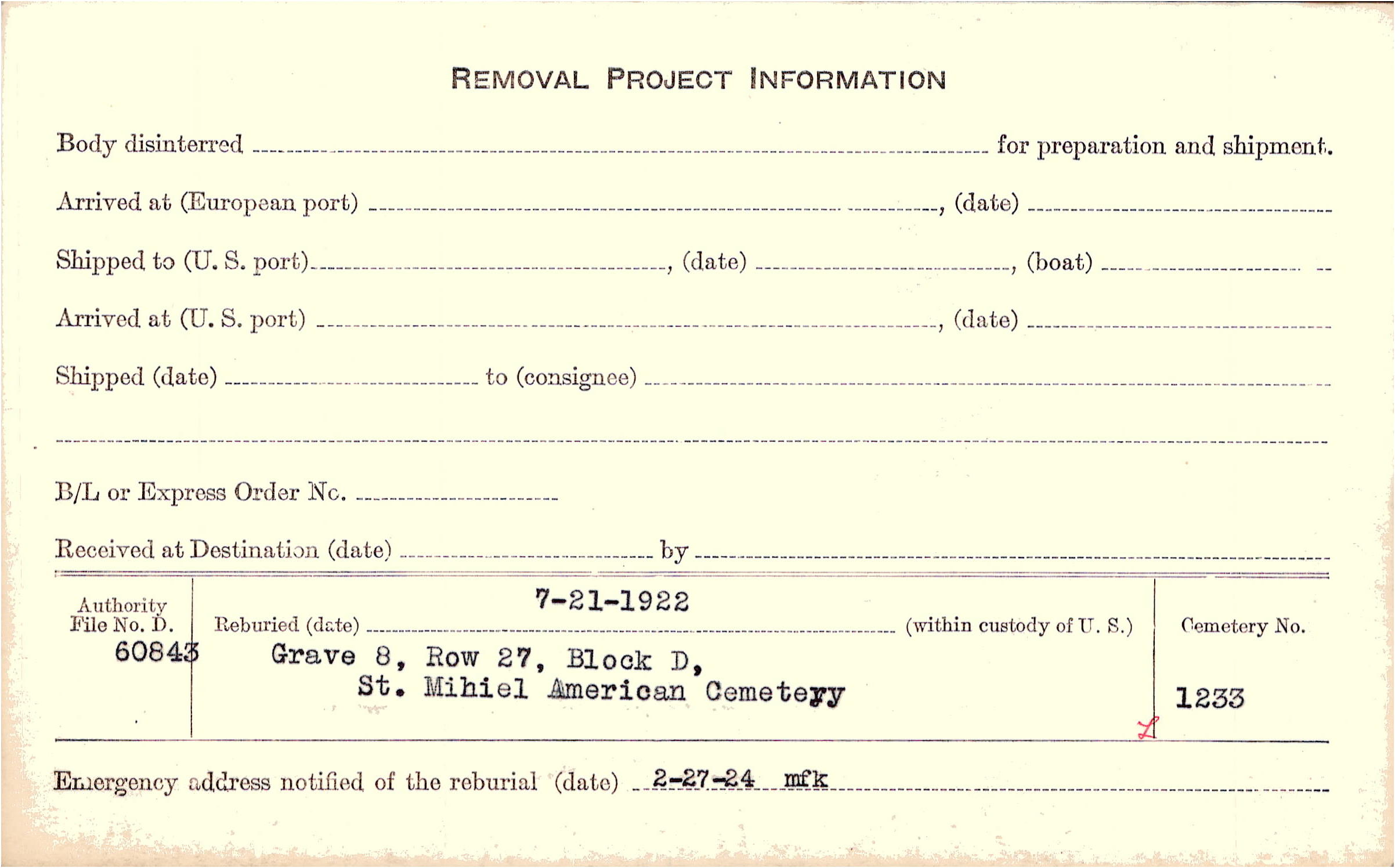 | Permanent Burial in Foreign Cemetery |