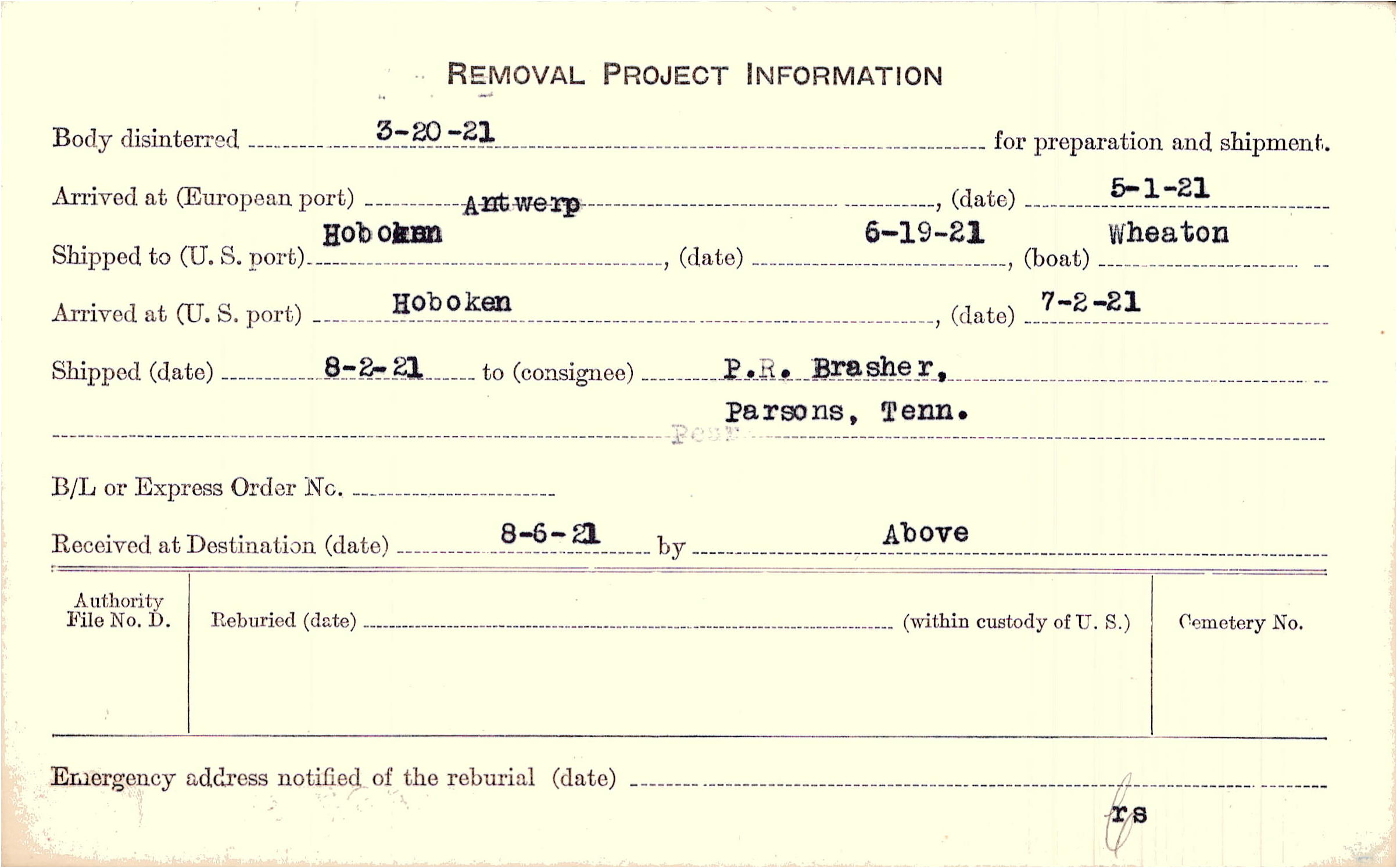 P. R. Brasher, (Father), R #2 Decatursville, Tenn.