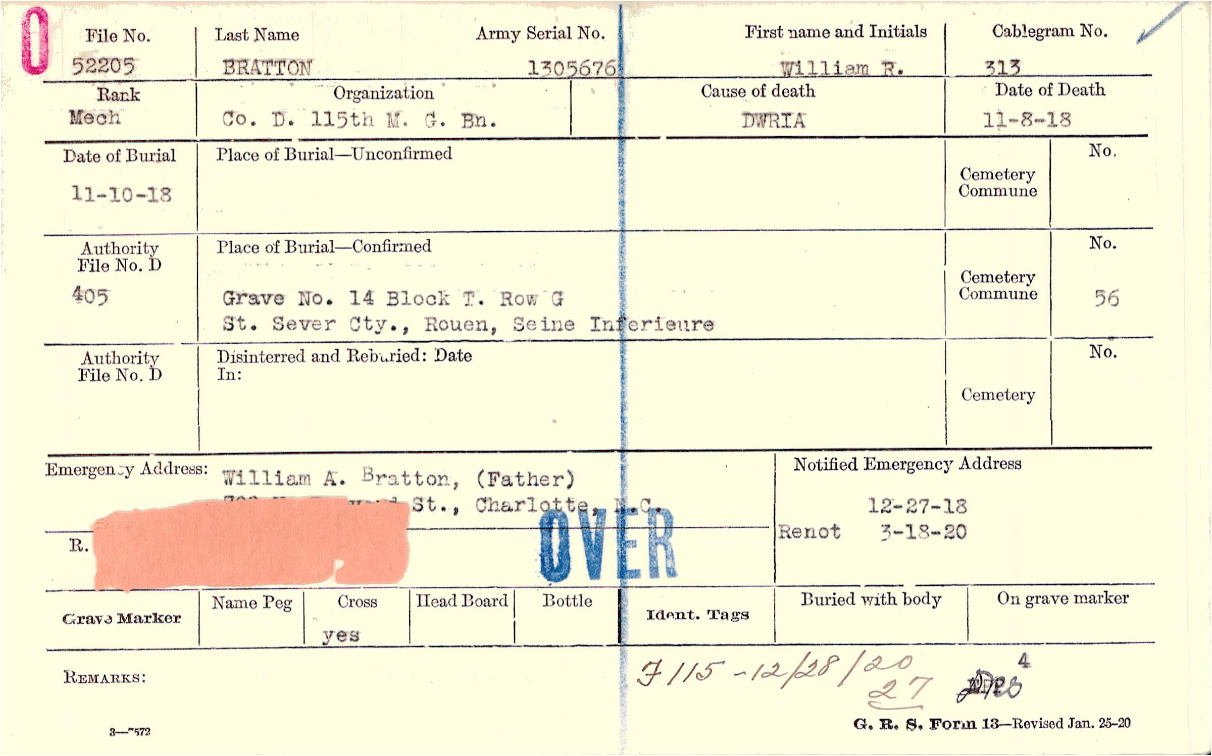 Grave 14, Block T, Row G, St. Sever Cty., Rouen, Seine Inferieure