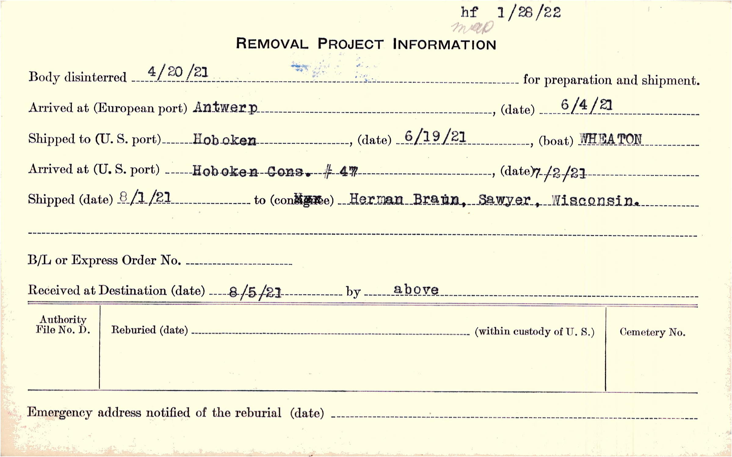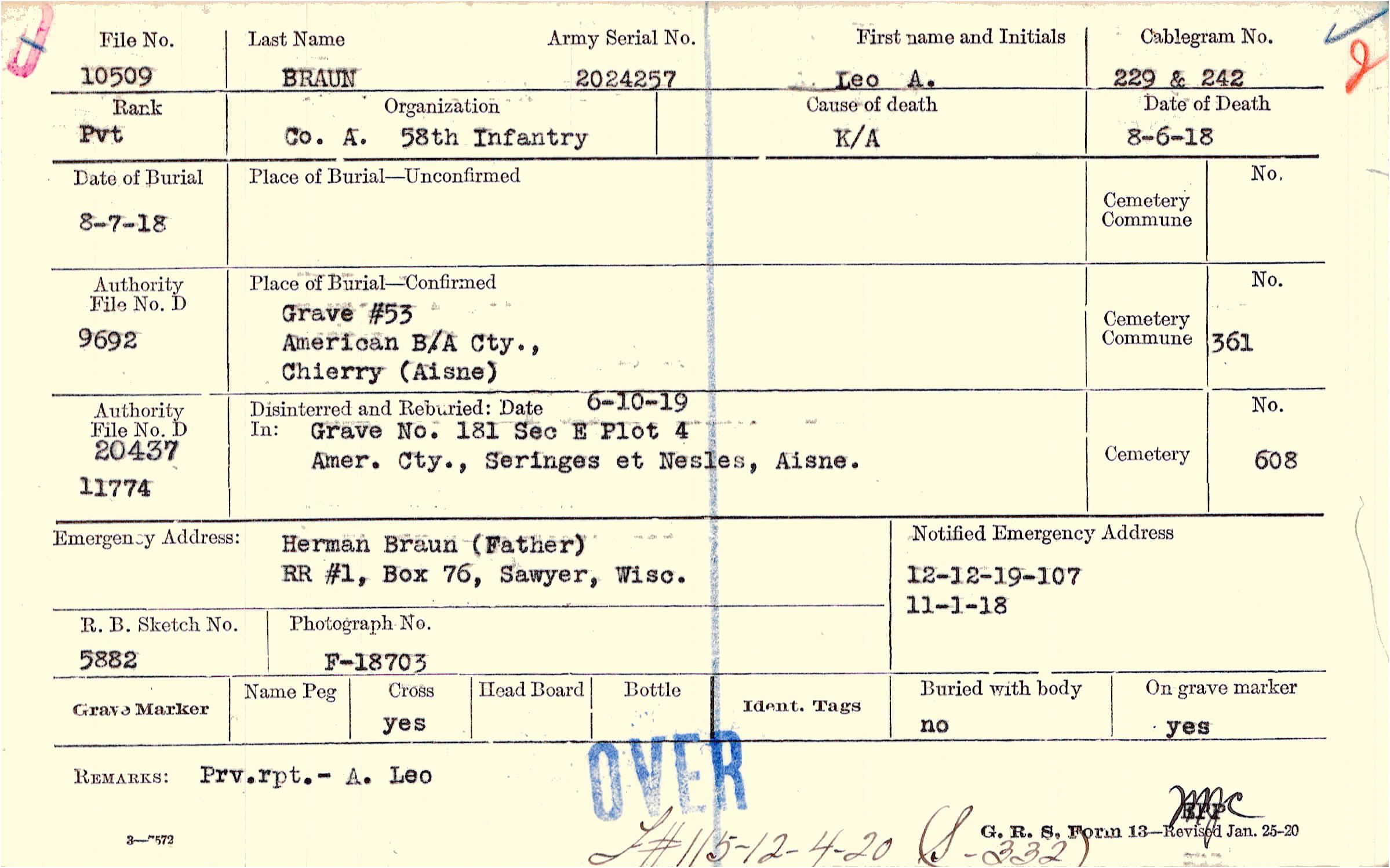 Herman Braun (Father), RR #1, Box 76, Sawyer, Wisc.