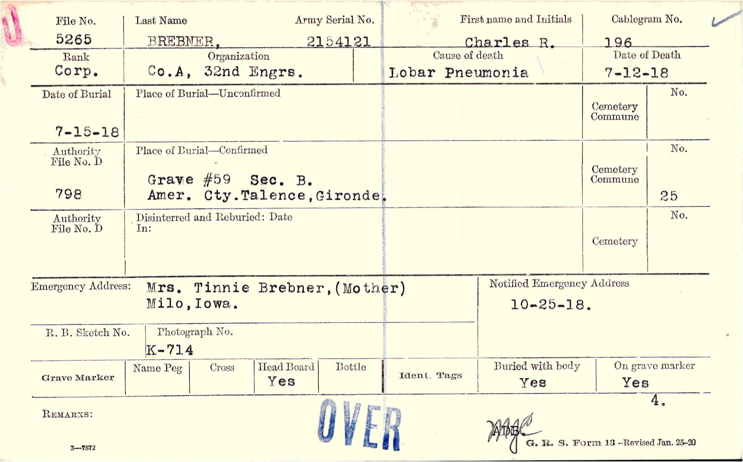 Grave #59, Sec. B., Amer. Cty., Talence, Gironde.