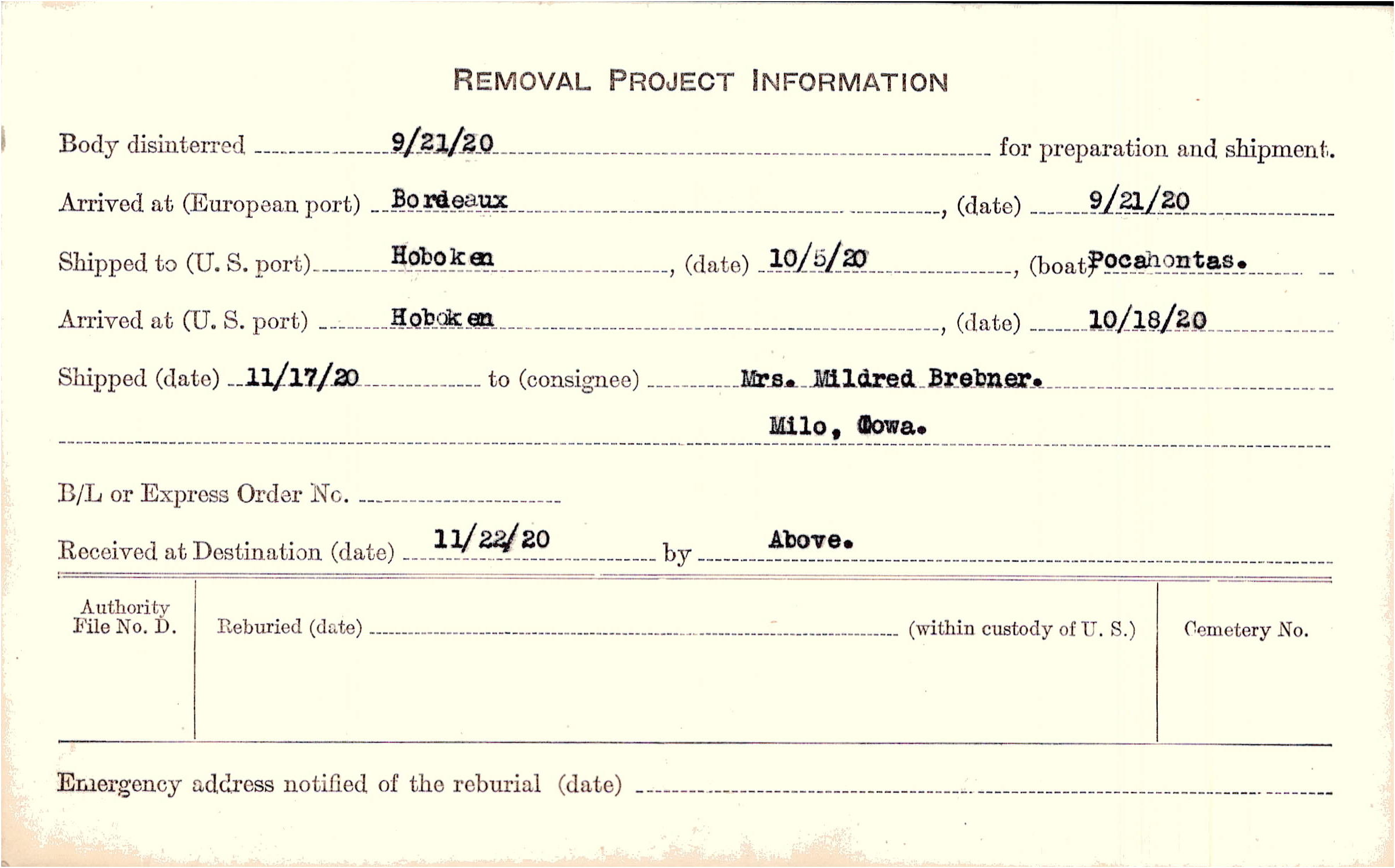Mrs. Tinnie Brebner, (mother), Milo, Iowa.