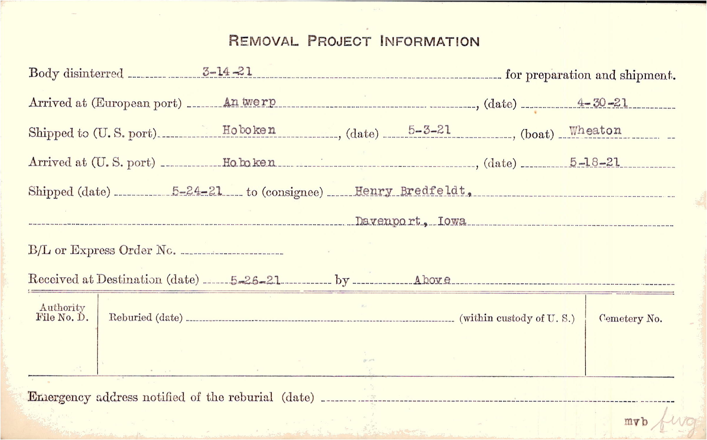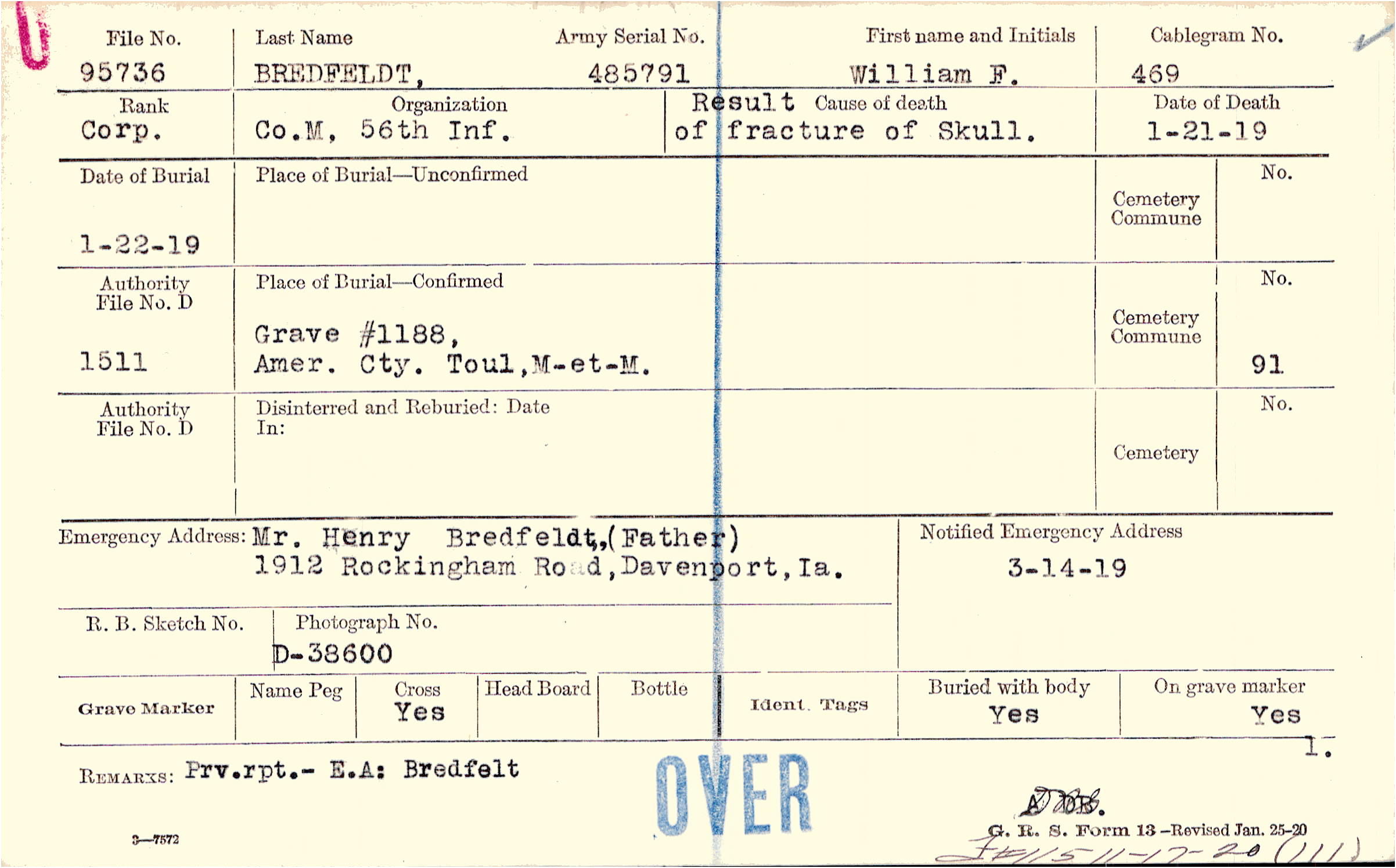 Mr. Henry Bredfeldt, (Father), 1912 Rockingham Road, Davenport, Ia.