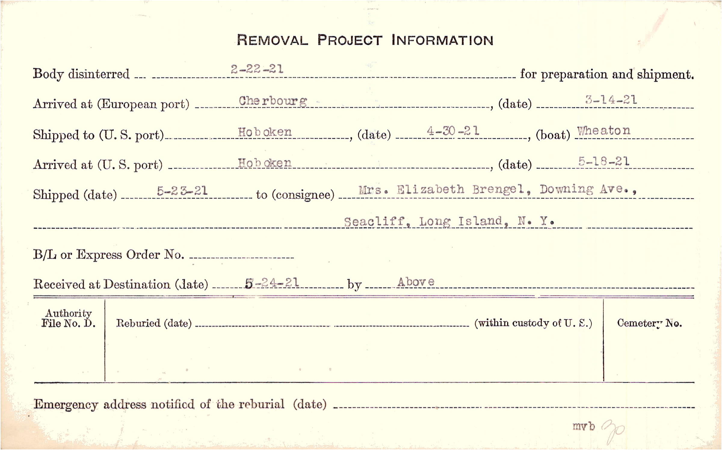 Mrs. Elizabeth Brengel, (Wife), Sea Cliff, L.I. N.Y.