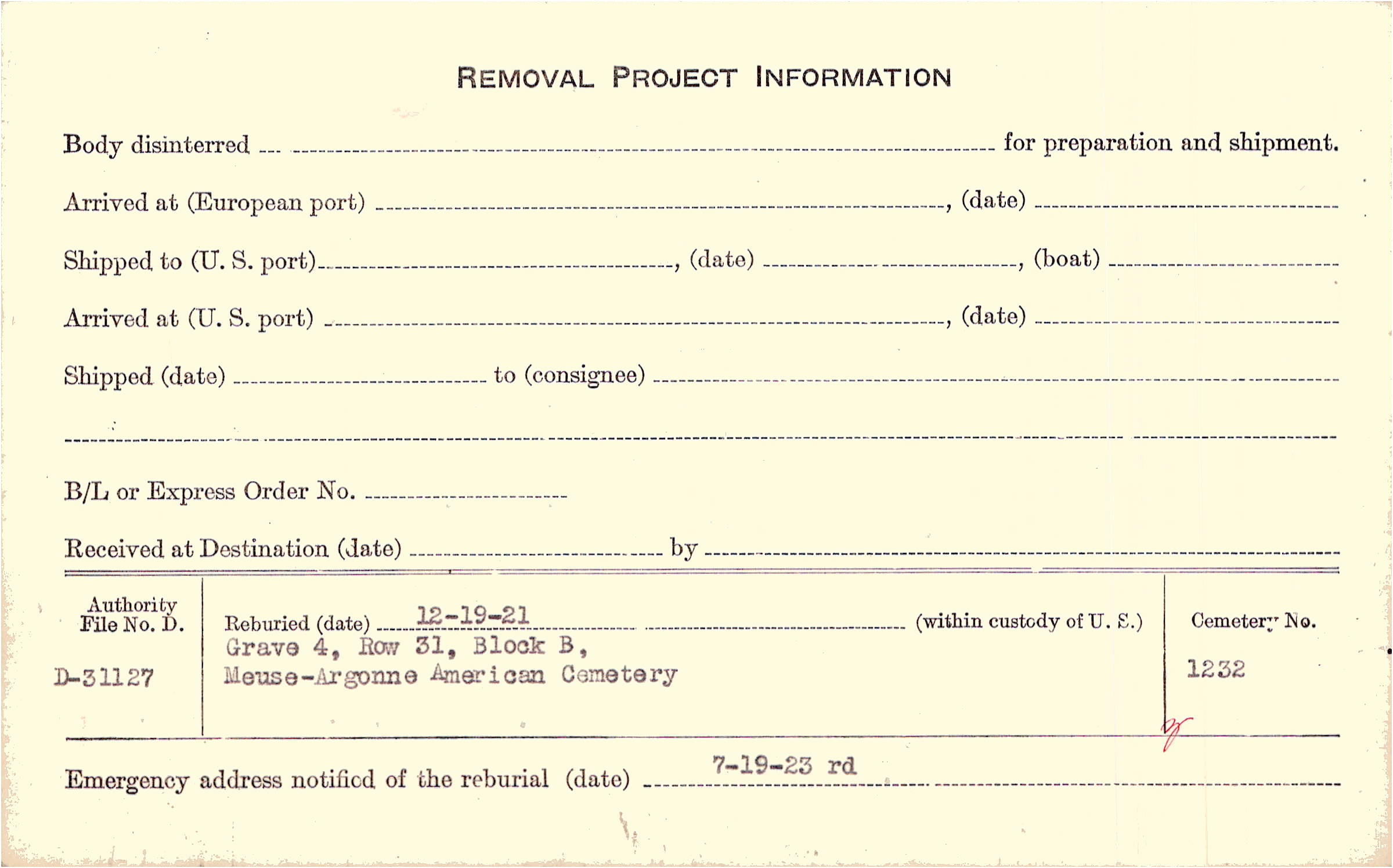 | Permanent Burial in Foreign Cemetery |