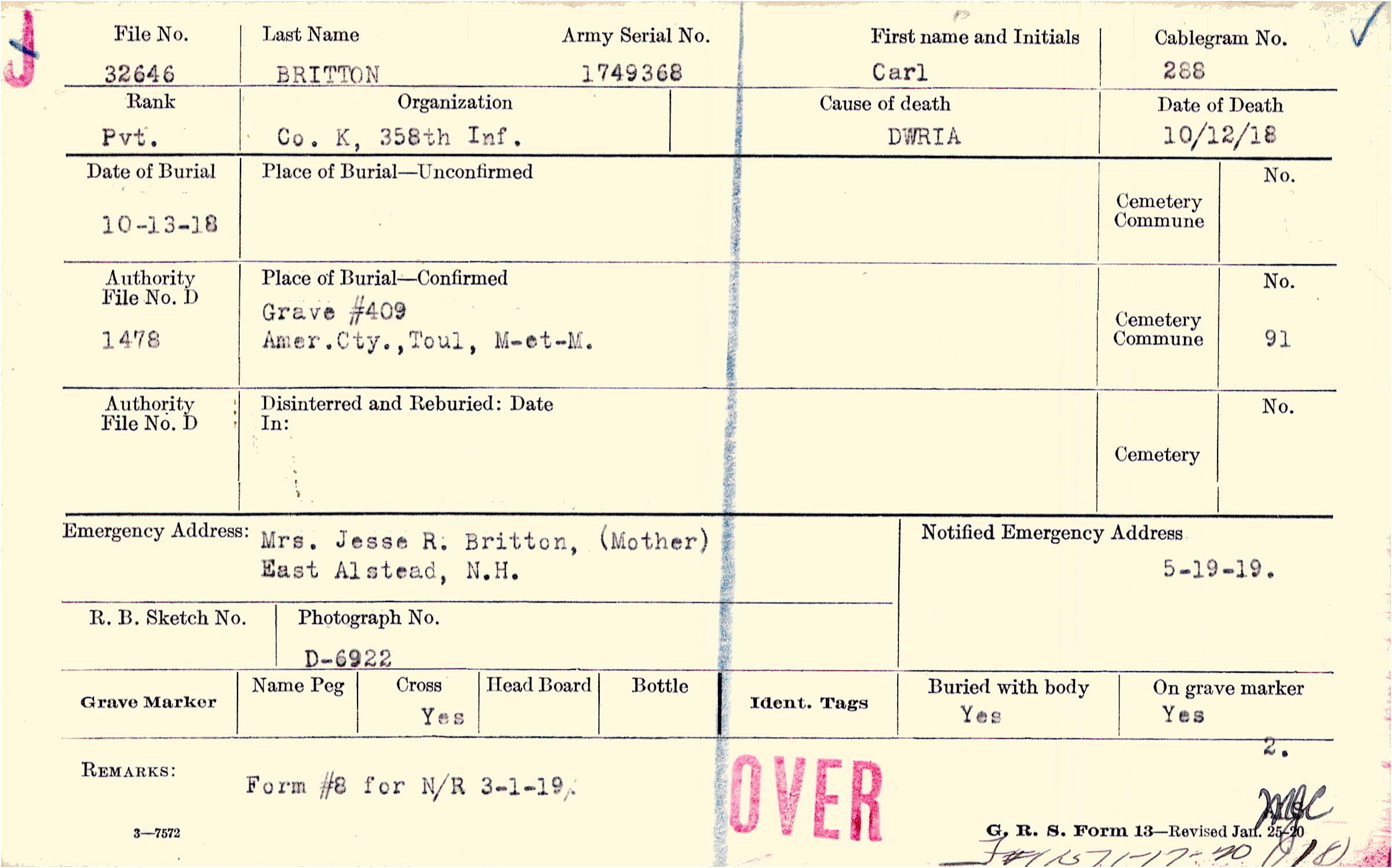 Mrs. Jesse R. Britton, (Mother), East Alstead, N.H.