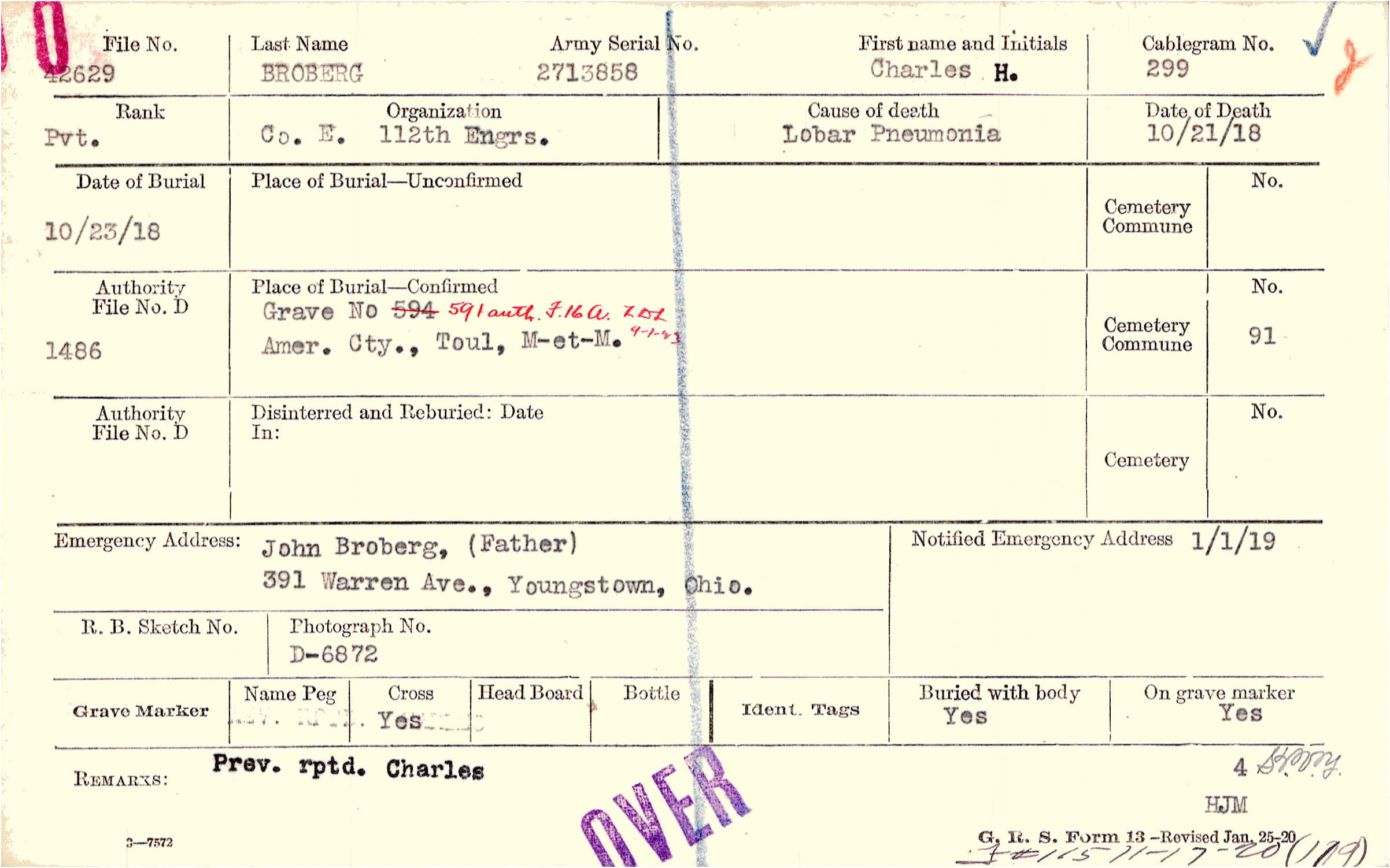 Grave 591, Amer. Cty., Toul, M-et-M.