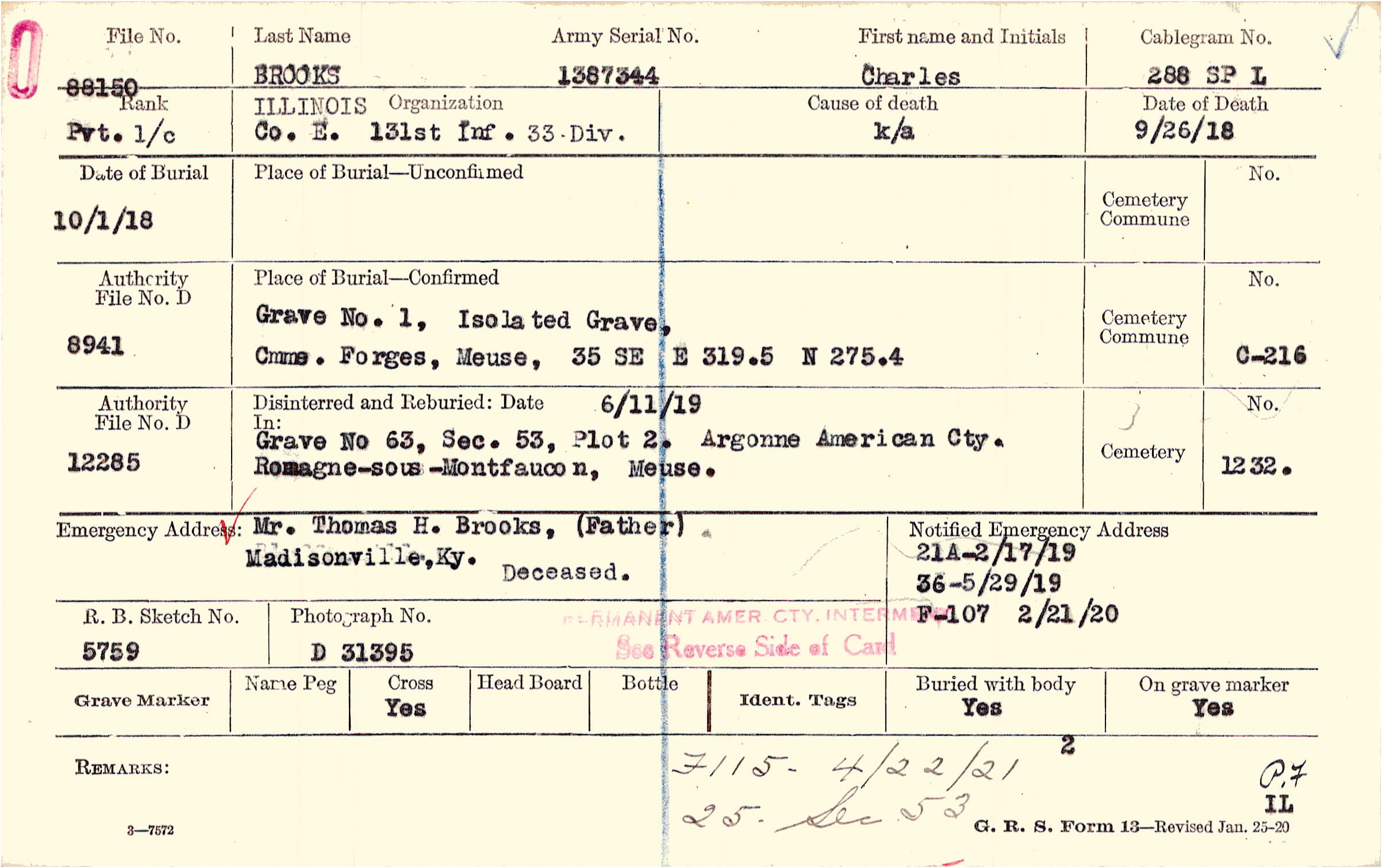 Mr. Thomas H. Brooks, (Father), Madisonville,Ky., Deceased.