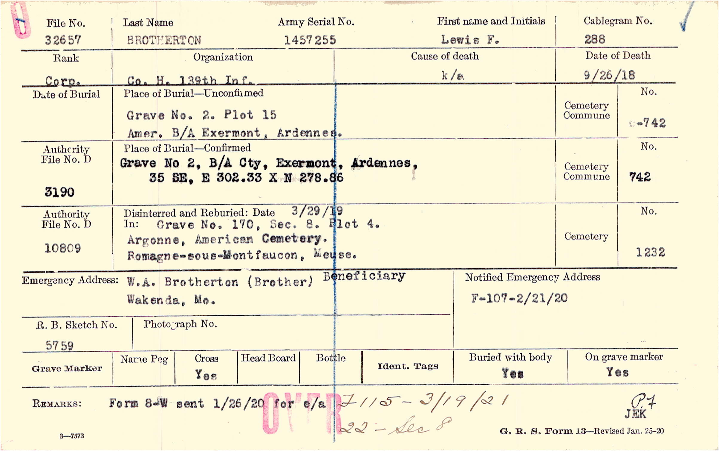 W.A. Brotherton (Brother), Wakenda, Mo., Beneficiary