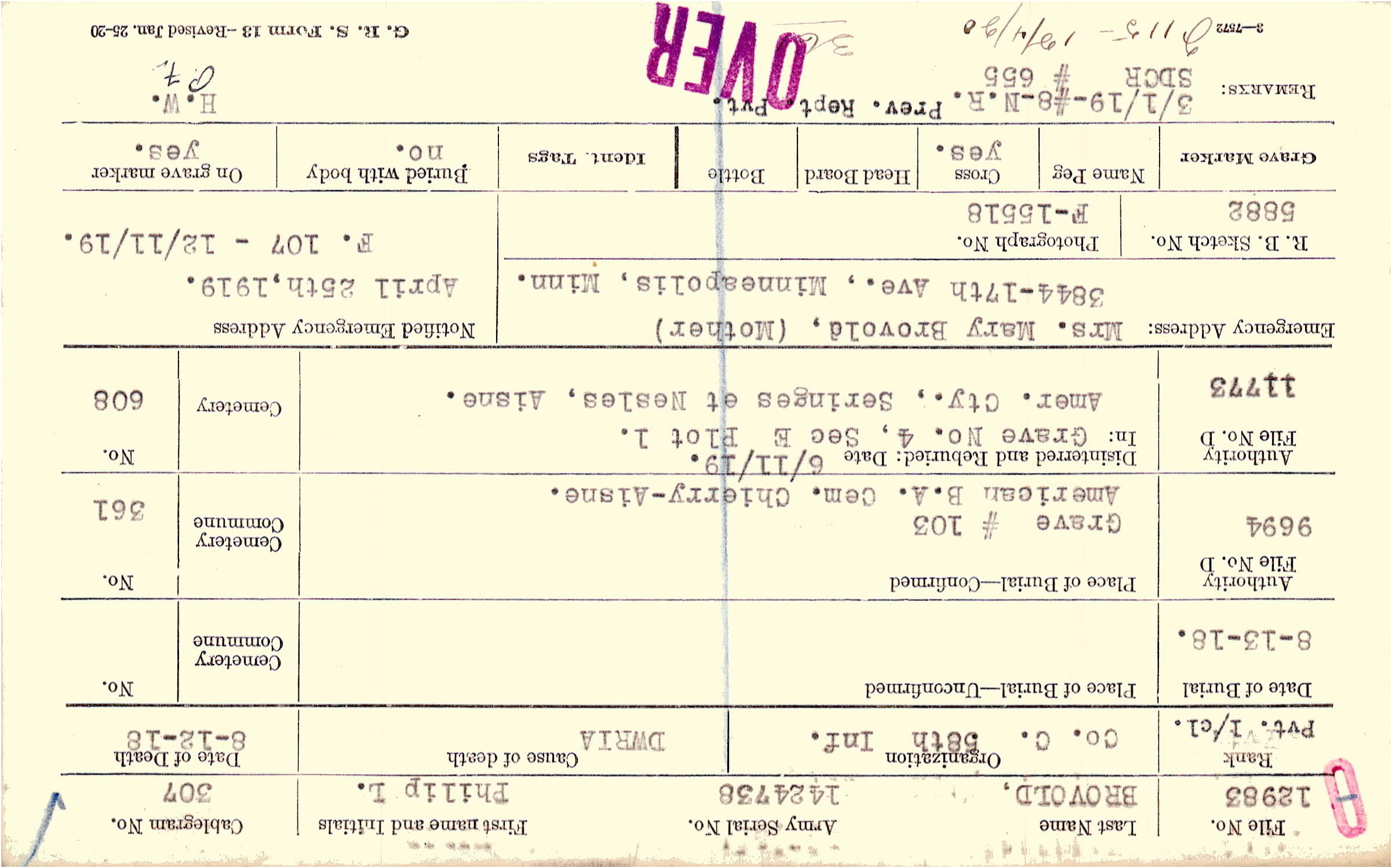 April 25th, 1919, F Form 107: 12/11/1919