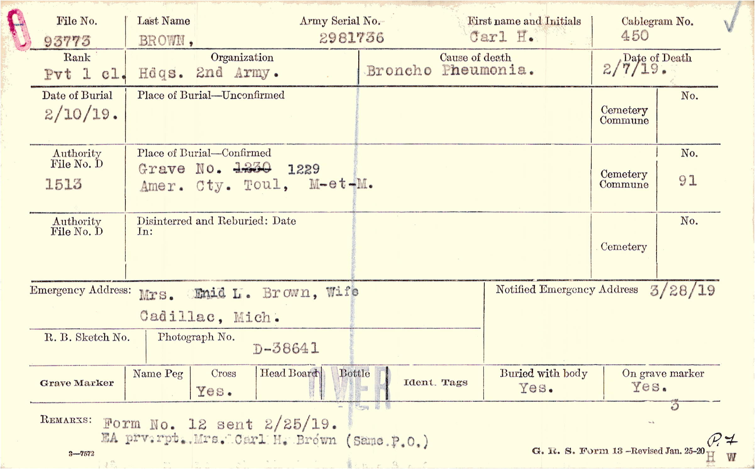 Grave 1229, Amer. Cty., Toul, M-et-M.