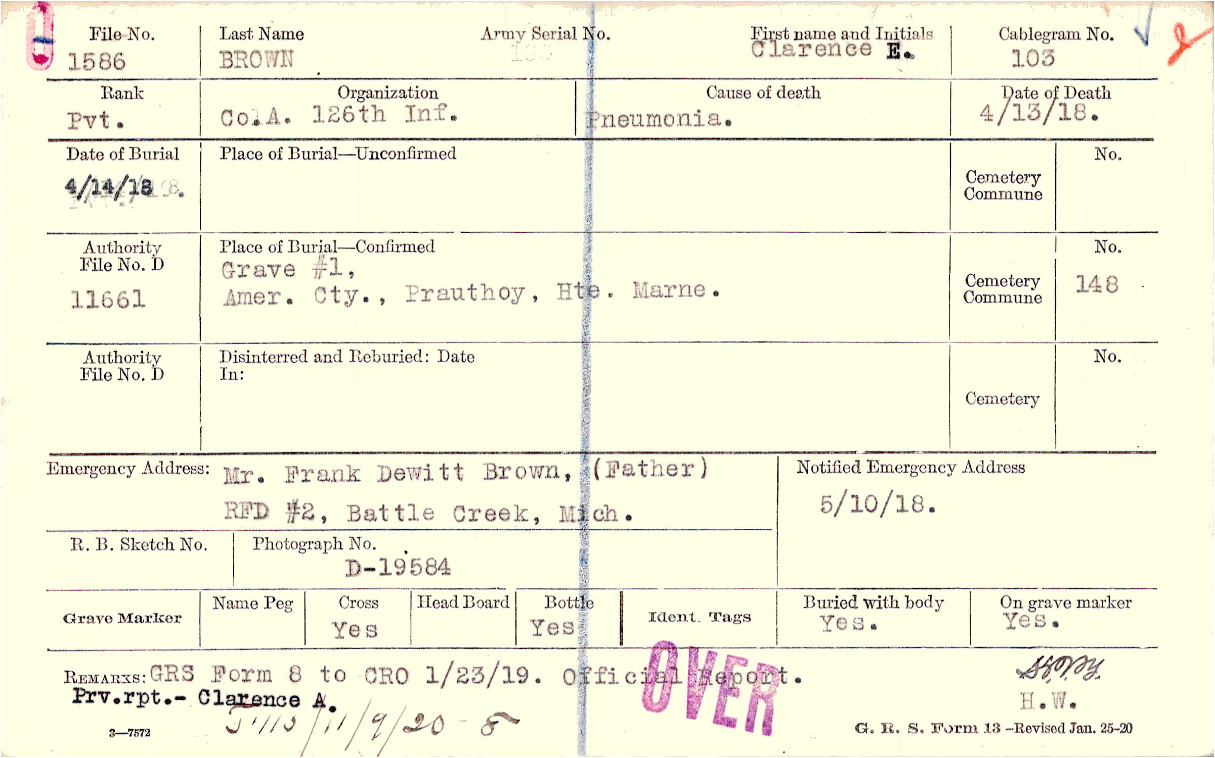Grave #1, Amer. Cty., Prauthoy, Hte., Marne.
