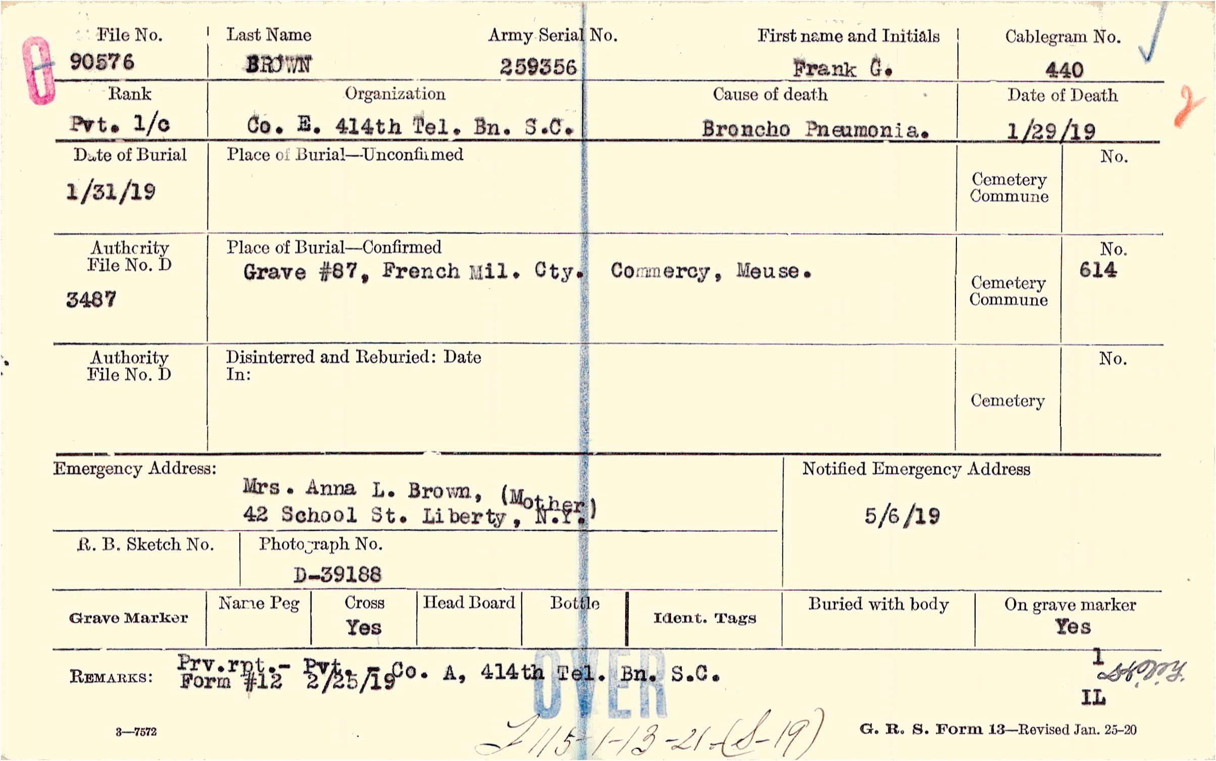 Grave #87, French Mil. Cty. Commercy, Meuse.