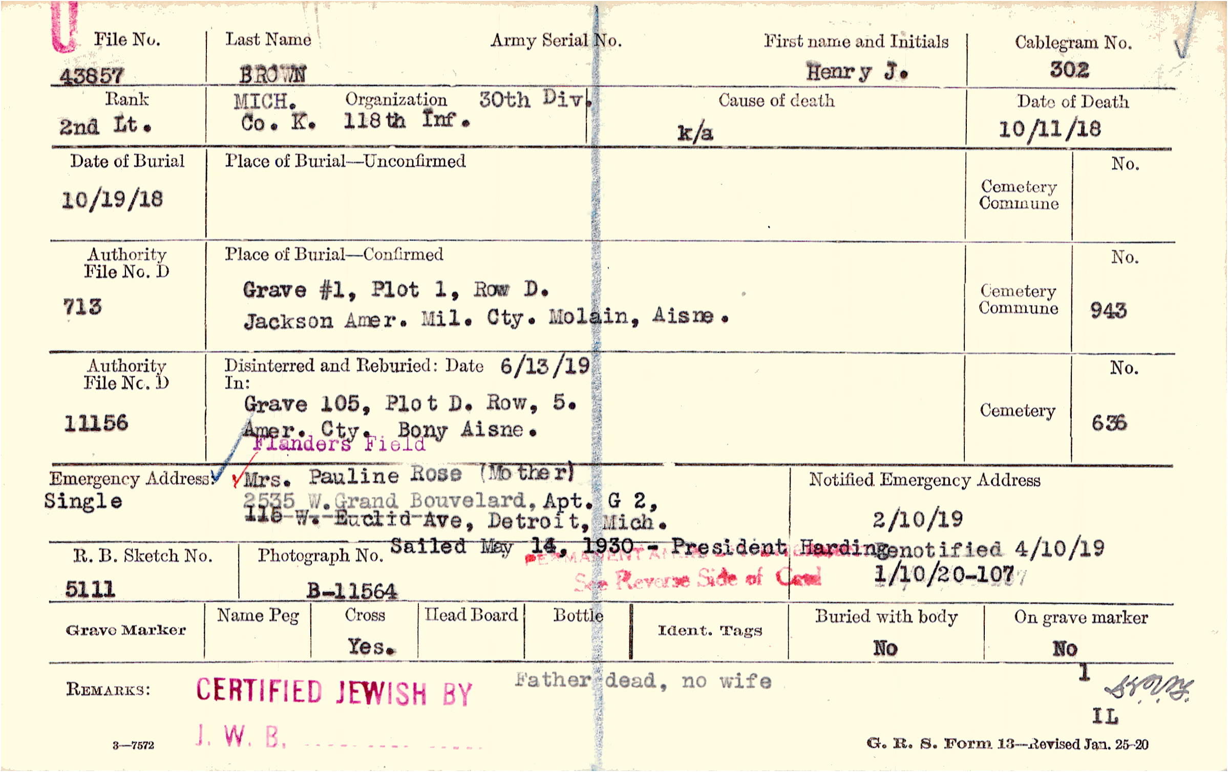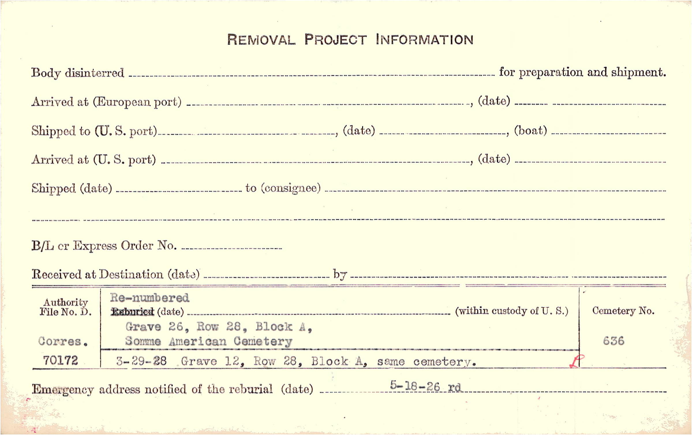 Prior Burial in Foreign Cemetery |