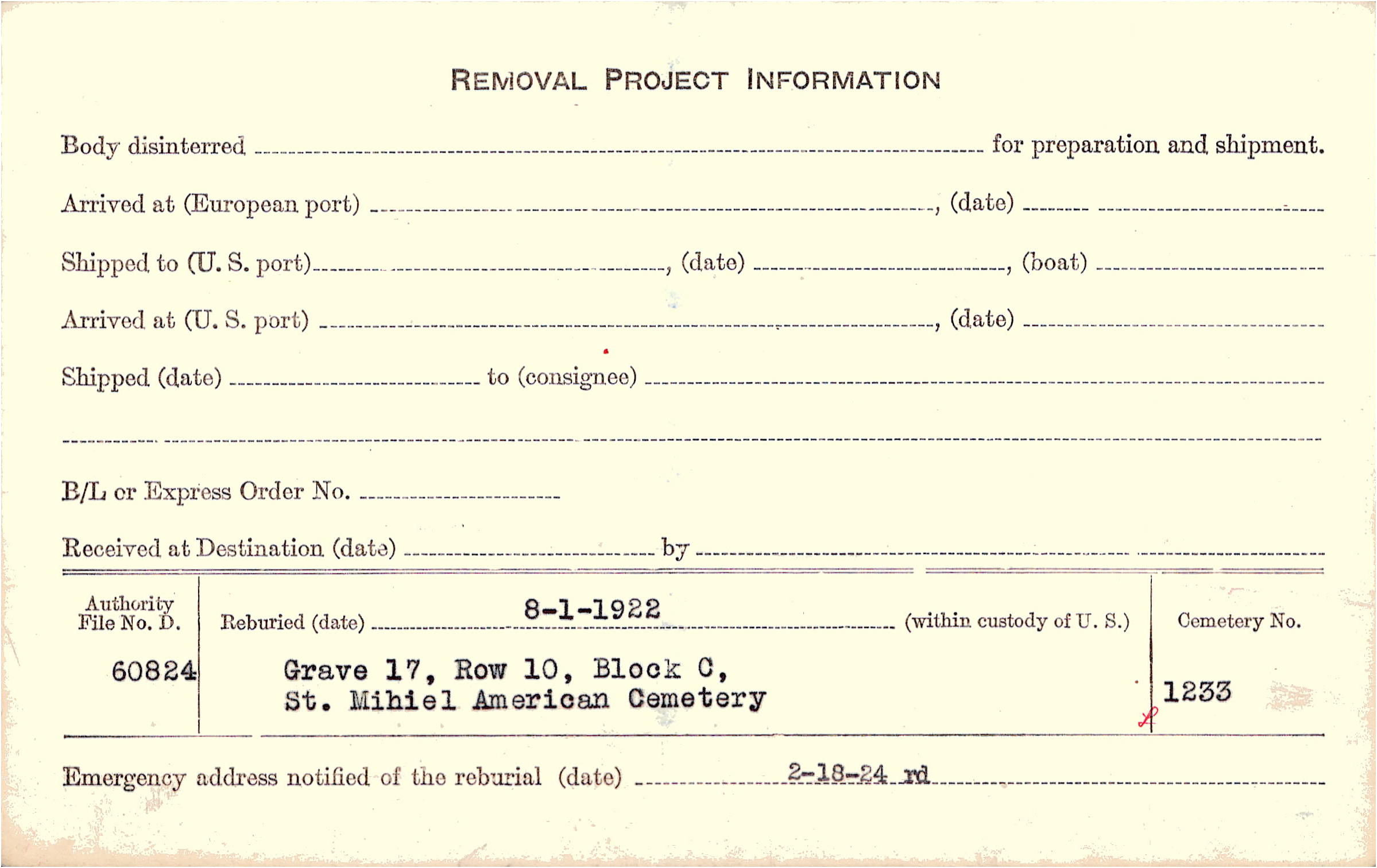 | Permanent Burial in Foreign Cemetery |