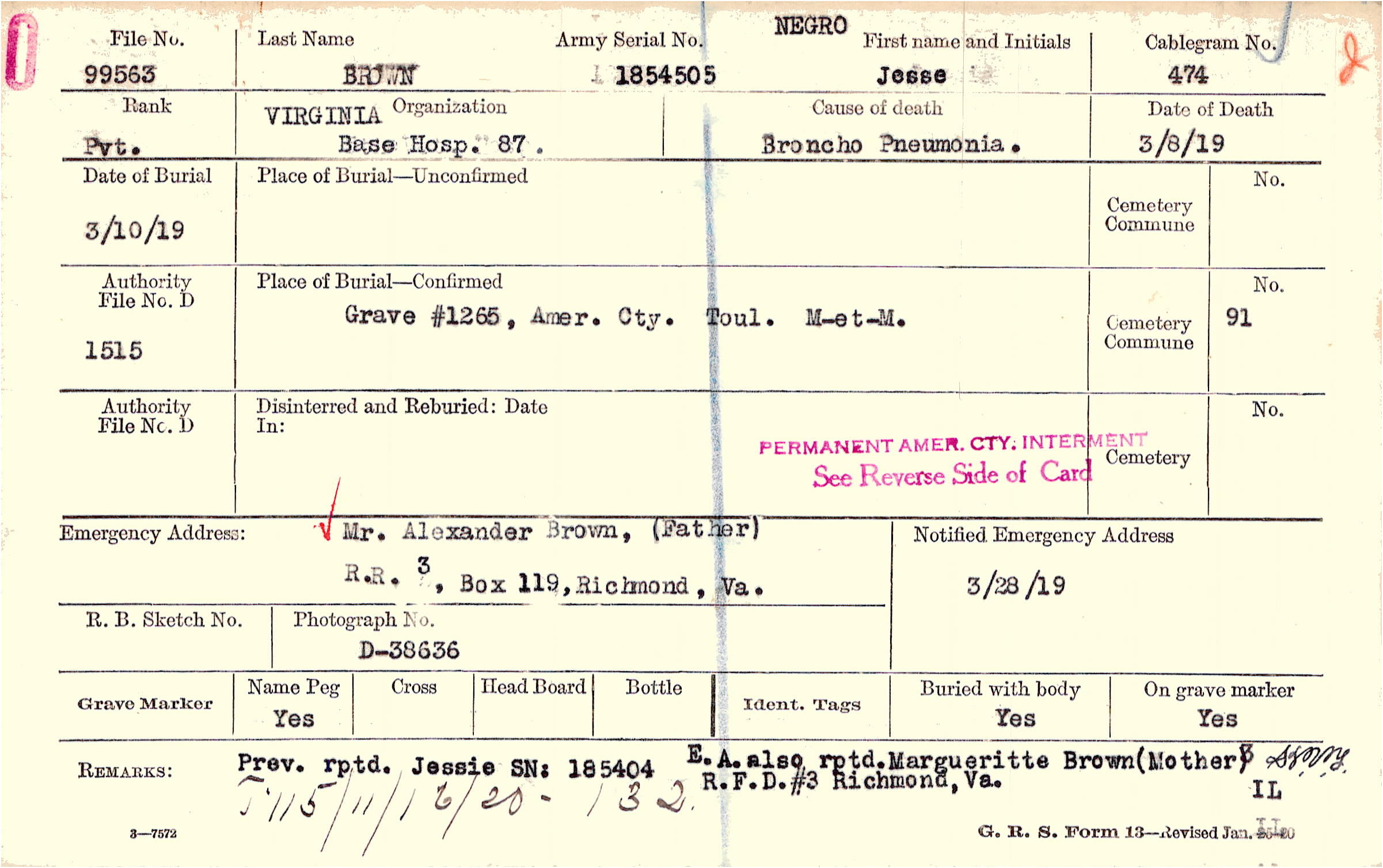 Mr. Alexander Brown, (Father), R.R. 3, Box 119, Richmond, Va.