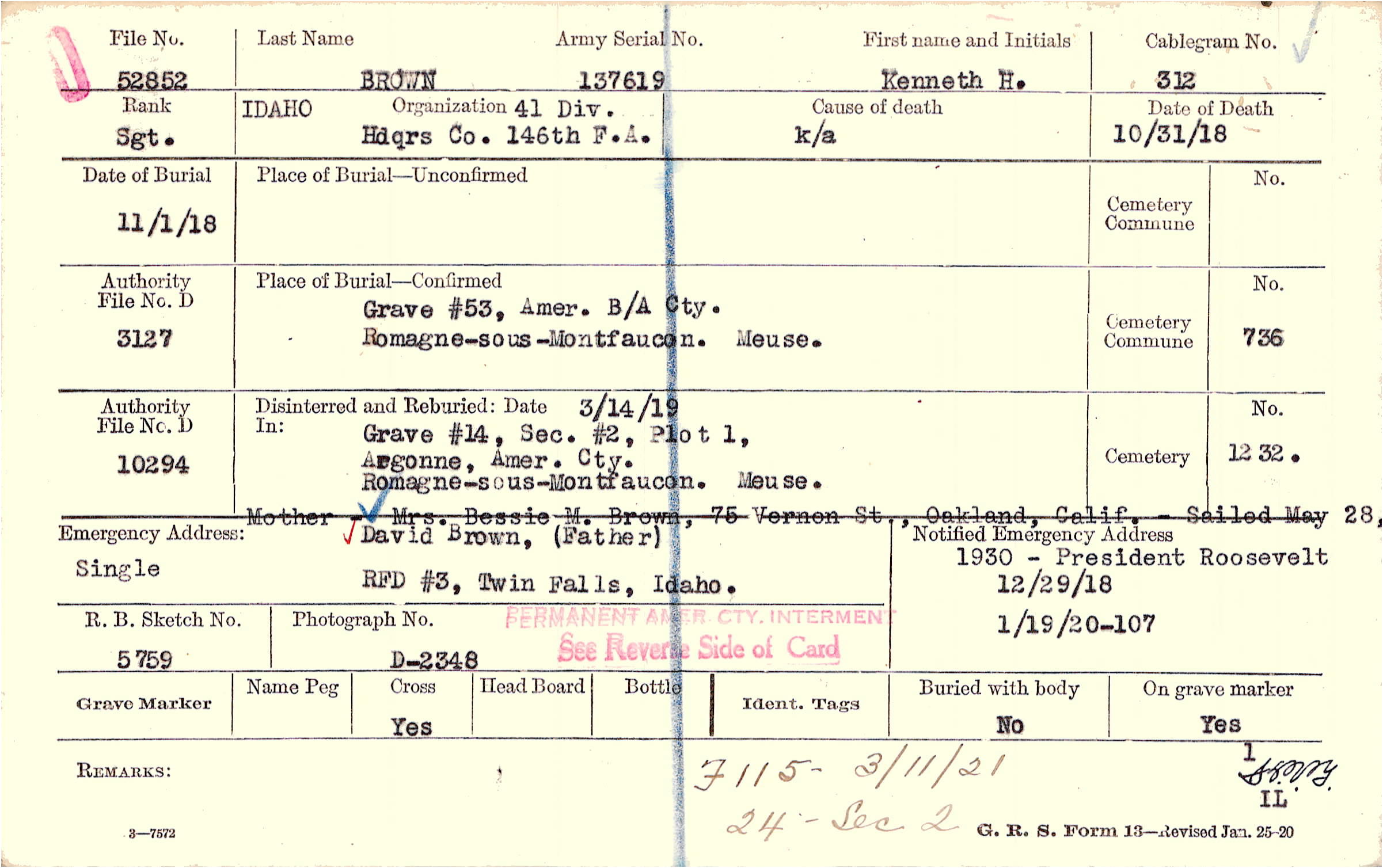 Grave #53, Amer. B/A Cty., Romagne-sous-Montfaucon., Meuse.