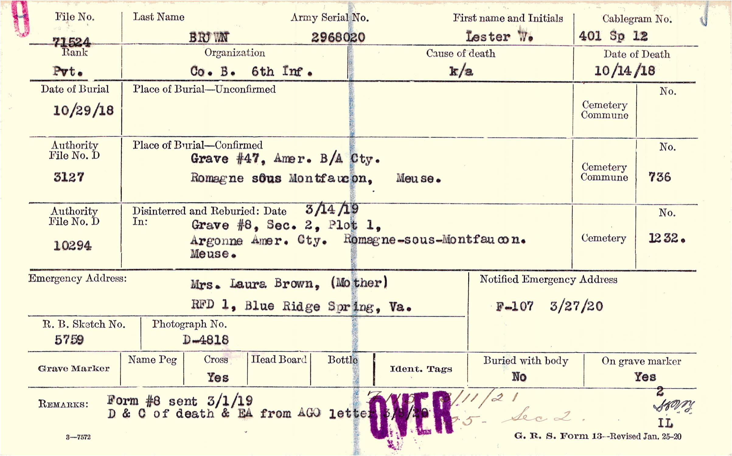 Grave #47, Amer. B/A Cty., Romagne sous Montfaucon, Meuse