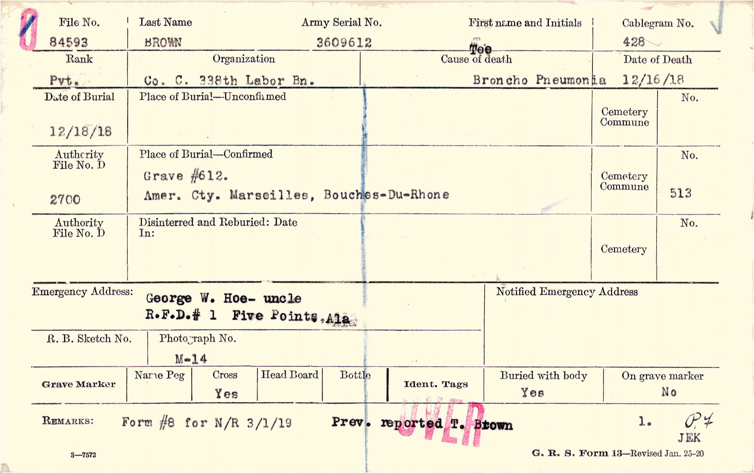 Grave #612, Amer. Cty., Marseilles, Bouches-Du-Rhone