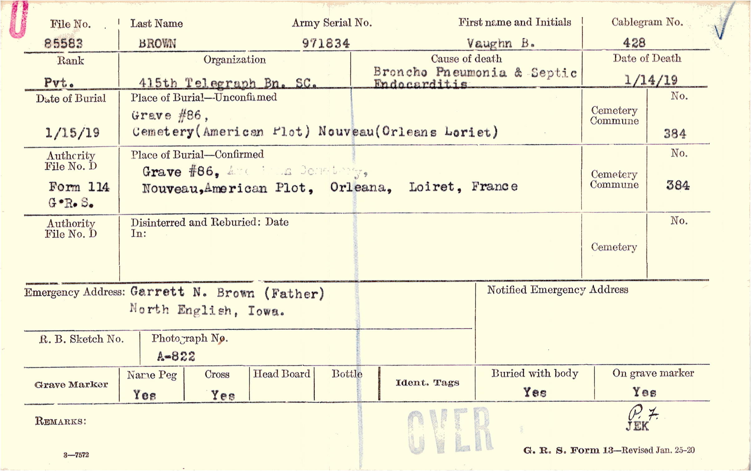 Grave #86, Nouveau, American Plot, Orleana, Loiret, France