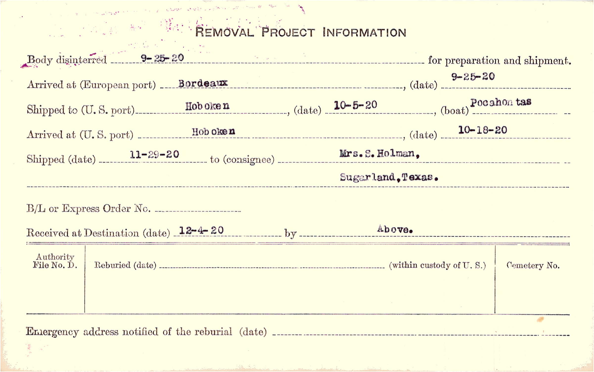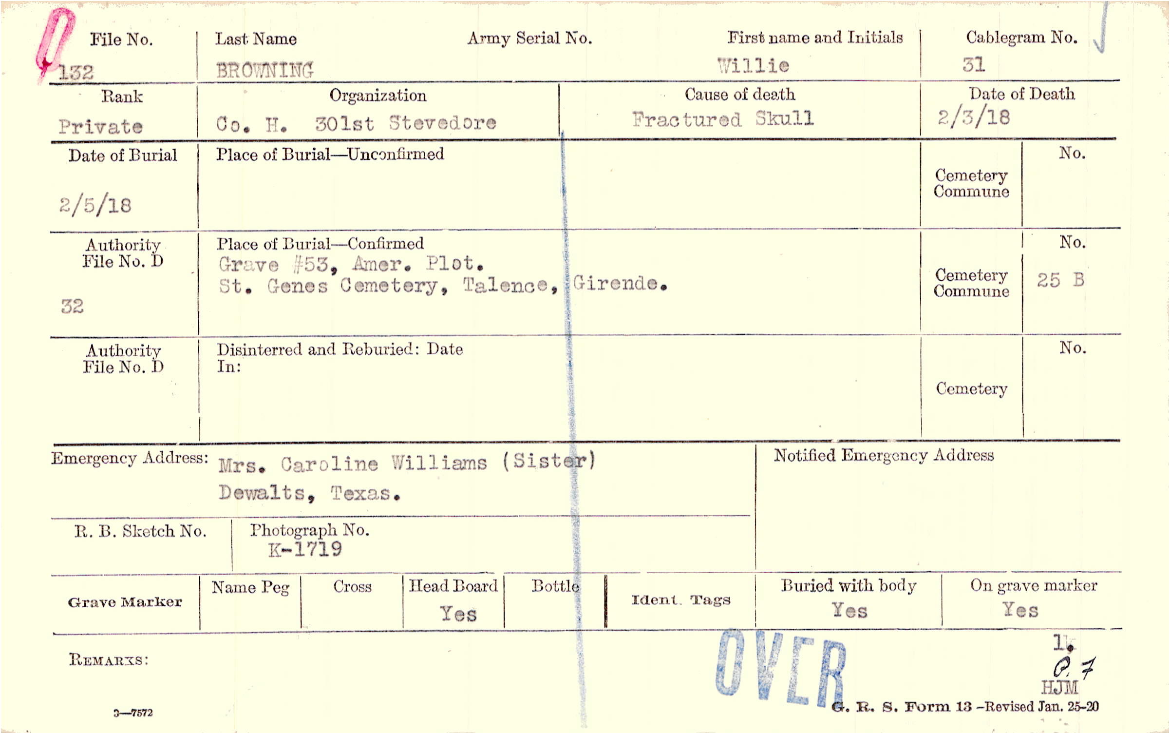 Grave #53, Amer. Plot, St. Genes Cemetery, Talence, Gironde.