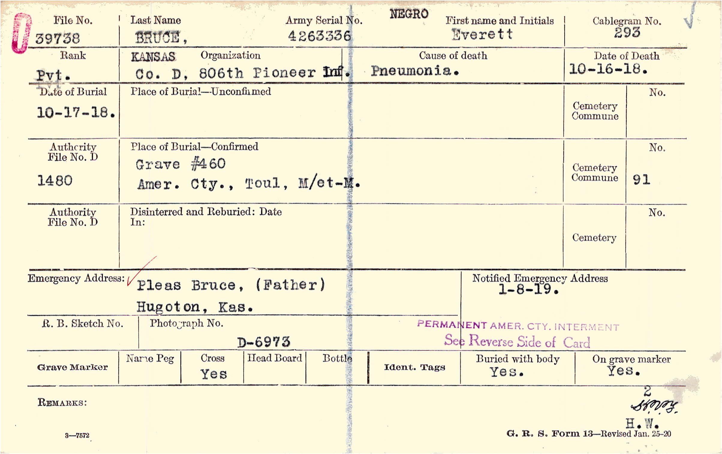 Grave #460, Amer. Cty. , Toul, M/et-M.