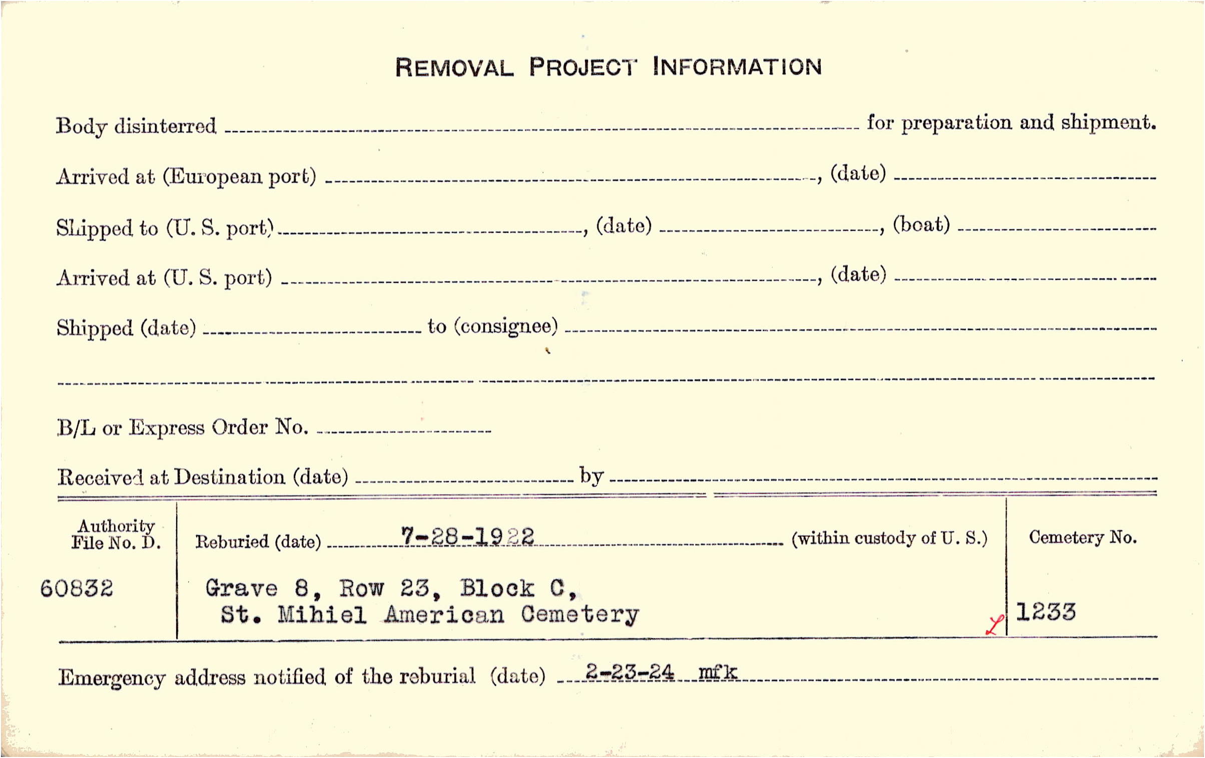 | Permanent Burial in Foreign Cemetery |