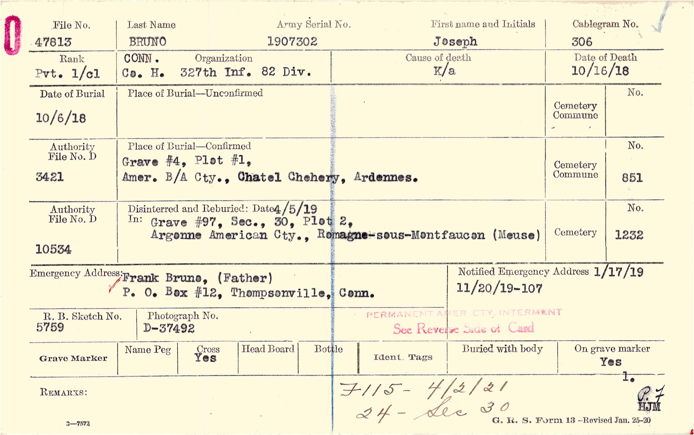 Frank Bruno, ( Father ), P. O. Box #12, Thompsonville, Conn.